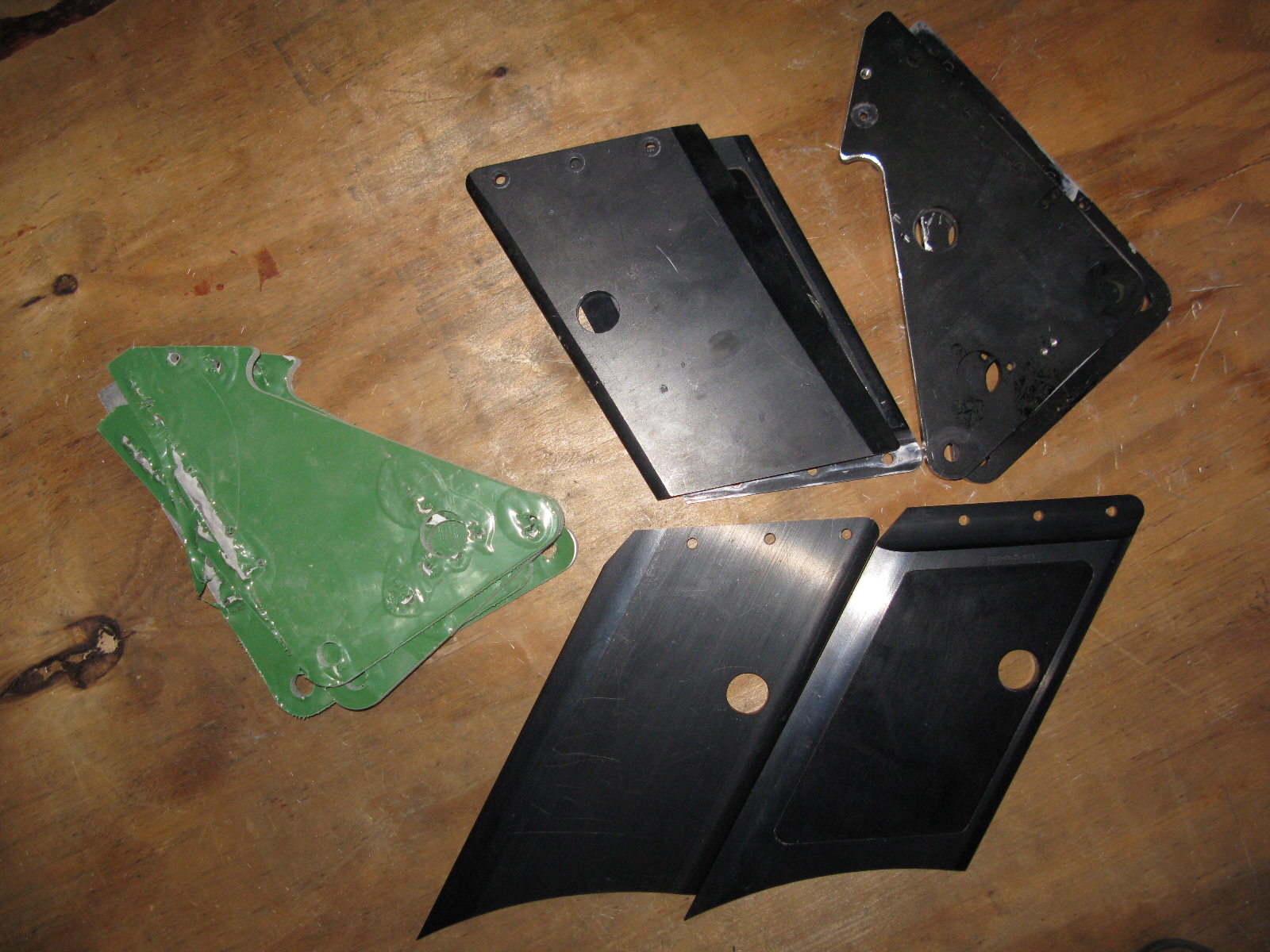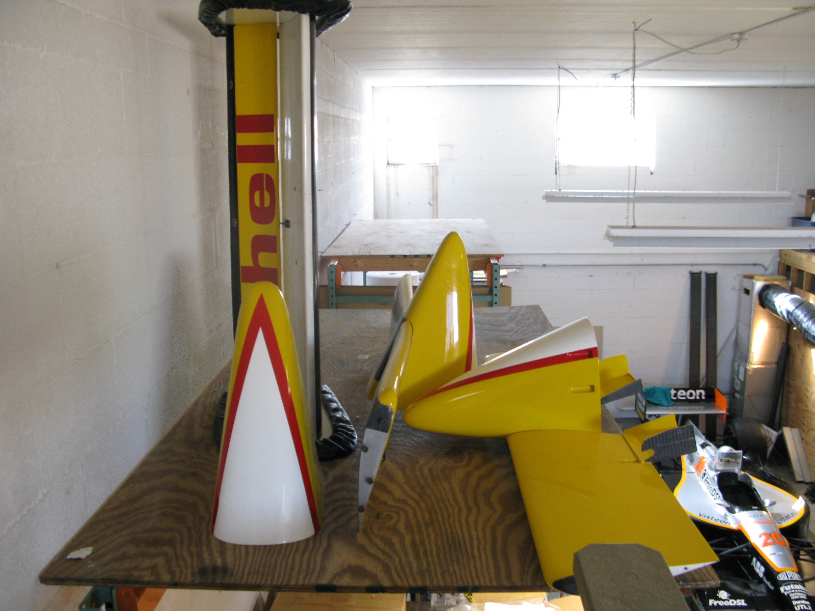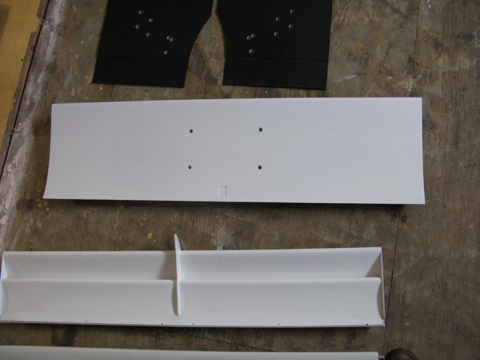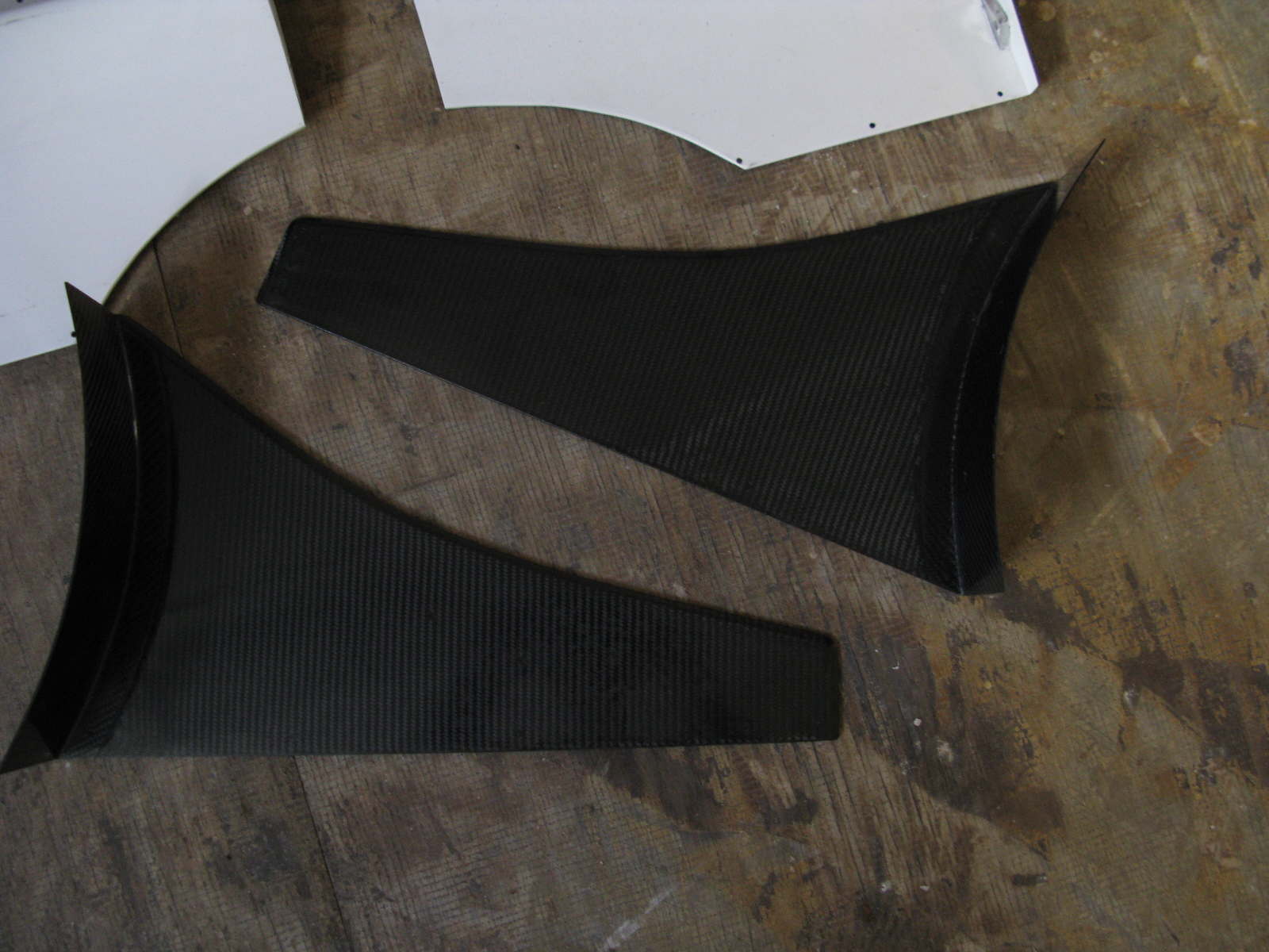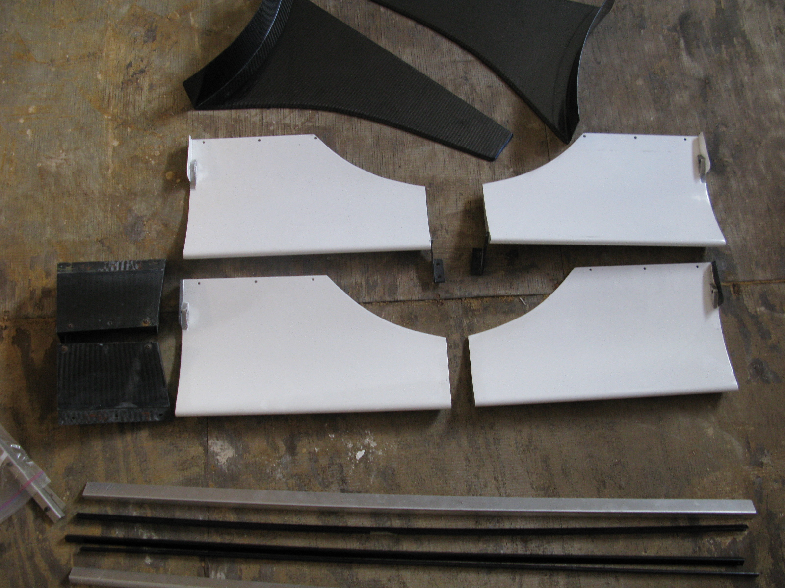 There are three painted front noses two of which have main planes and flaps. I had my carbon guy build a mold for the front wing end fences that have integrated carbon front wheel fairings (a Ganassi trick). There is one complete assembled rear wing spare and the separate bits to build a second. The rear wing end plates are also fabricated by my carbon guy and I have molds for both the front and rear wing end plates.