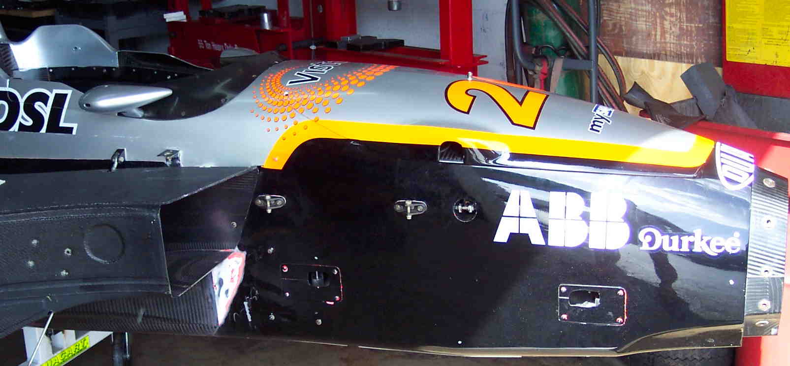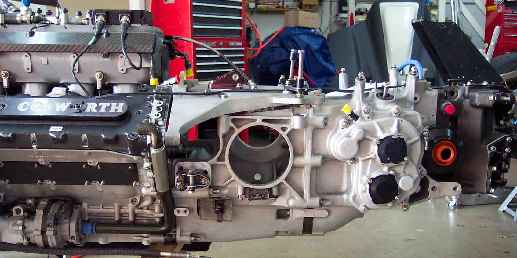 The following pictures are from the Visteon ChampCar restoration. The suspension arms were crack tested and painted in epoxy. The gearbox has been fully crack tested and assembled with road course gearing. The engine (XD) is fresh from Cosworth.