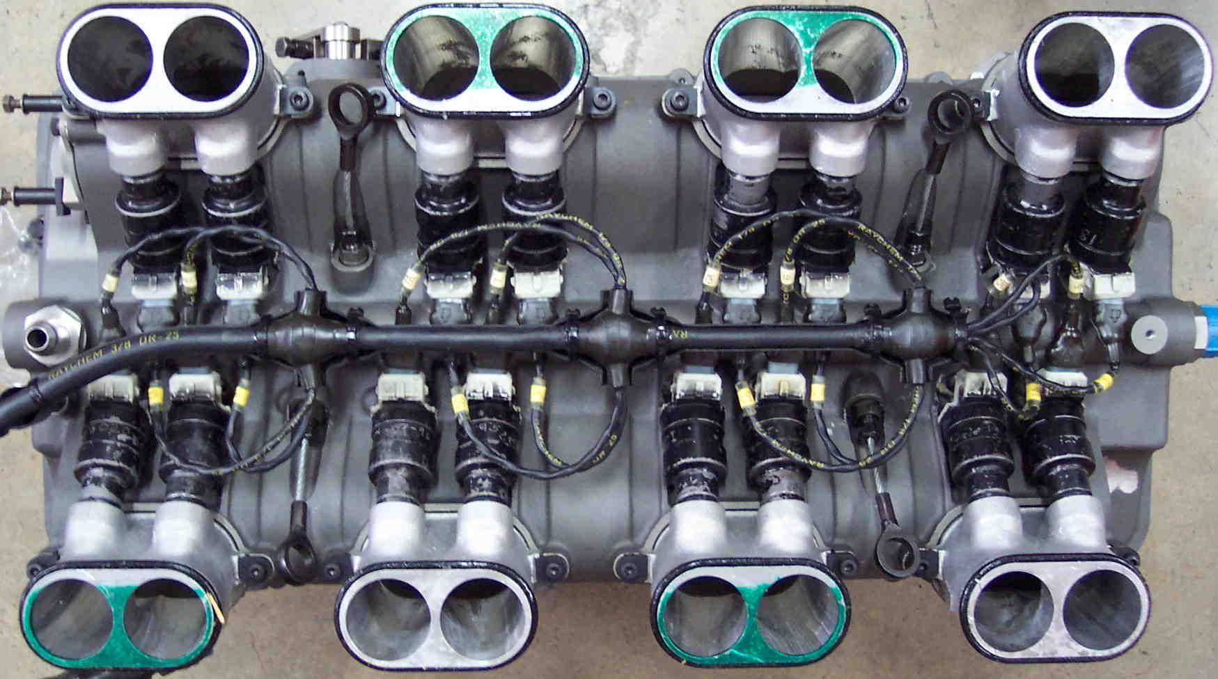 acquisition The XB Series Two was last run in mass in 1995; with but a few teams running the engine in 1996. It is a 2.65 liter V-8 burning methanol and producing in excess of 750 horsepower at 12,000 RPM and 45" of boost. For reference, boost is measured in inches of mercury absolute pressure. Standard atmospheric pressure is 30" (14.7 psi) and thus 45" equates to 7.35 psi of boost over ambient pressure. Although they were run to 13,200 RPM in their day, we limit them to 12,000 RPM to reduce stress on the rotating assembly, reduce damaging vibration and generally increase service life.