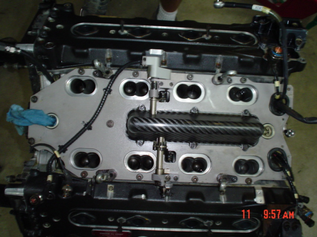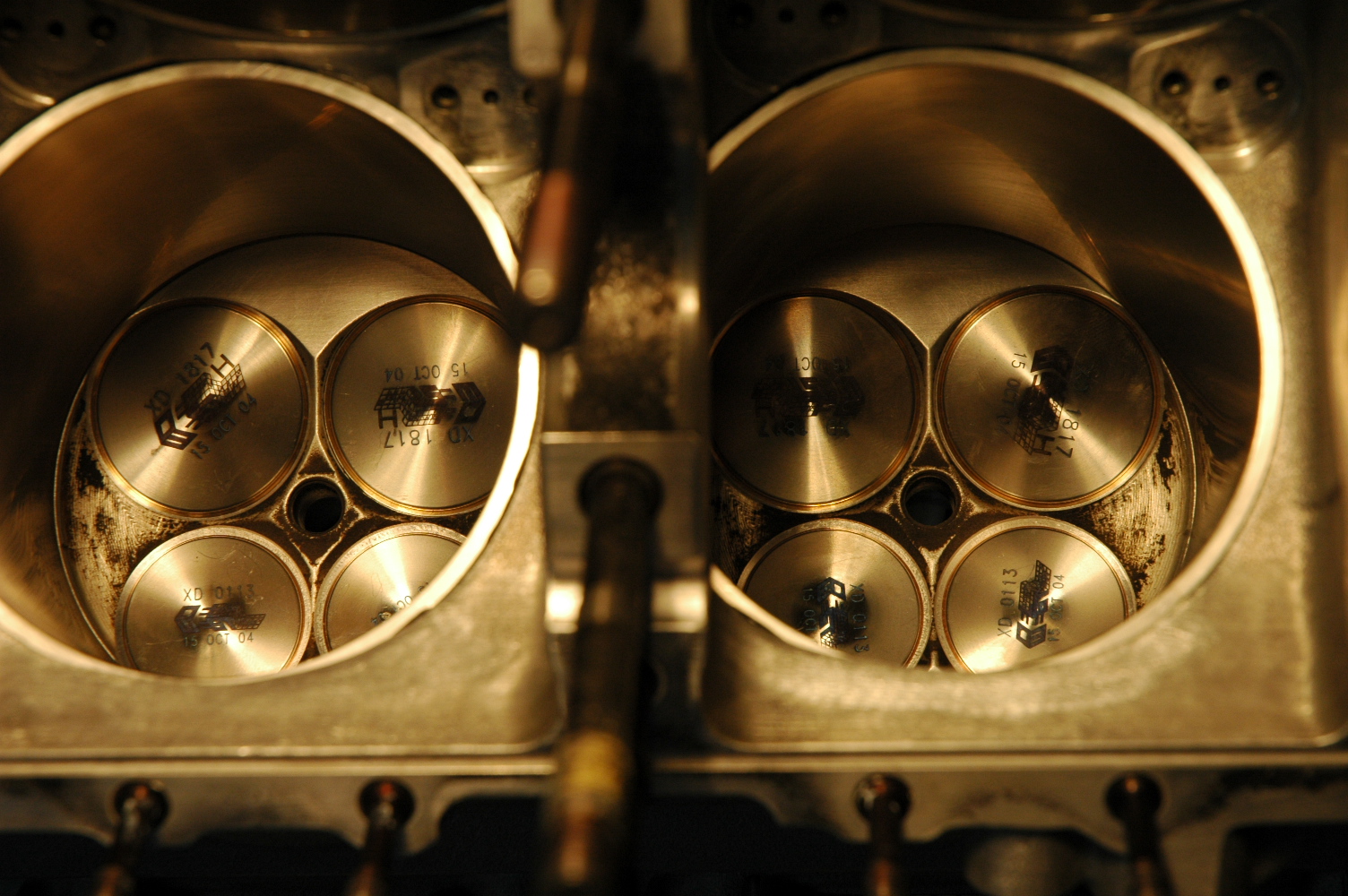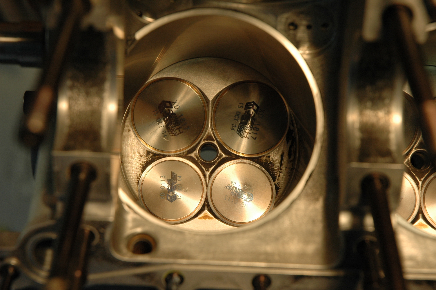 The remainder of this page is devoted to the XD refresh process. One quick note: It is interesting to look at the way Cosworth has generated room for valves in a relatively small displacement motor. Bore is 92mm (same as the XB) making the stroke 50mm to yield about 2.65 liters of displacement. This massively over square configuration allows for a large amount of valve area as shown in the pictures below. I have been told that the Honda and Toyota motors are even more over square.