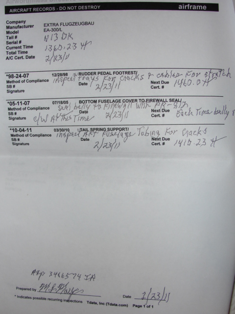 Southern Aerobatics (complied with SB 300-2-95 on 3-2-2008 201.1
