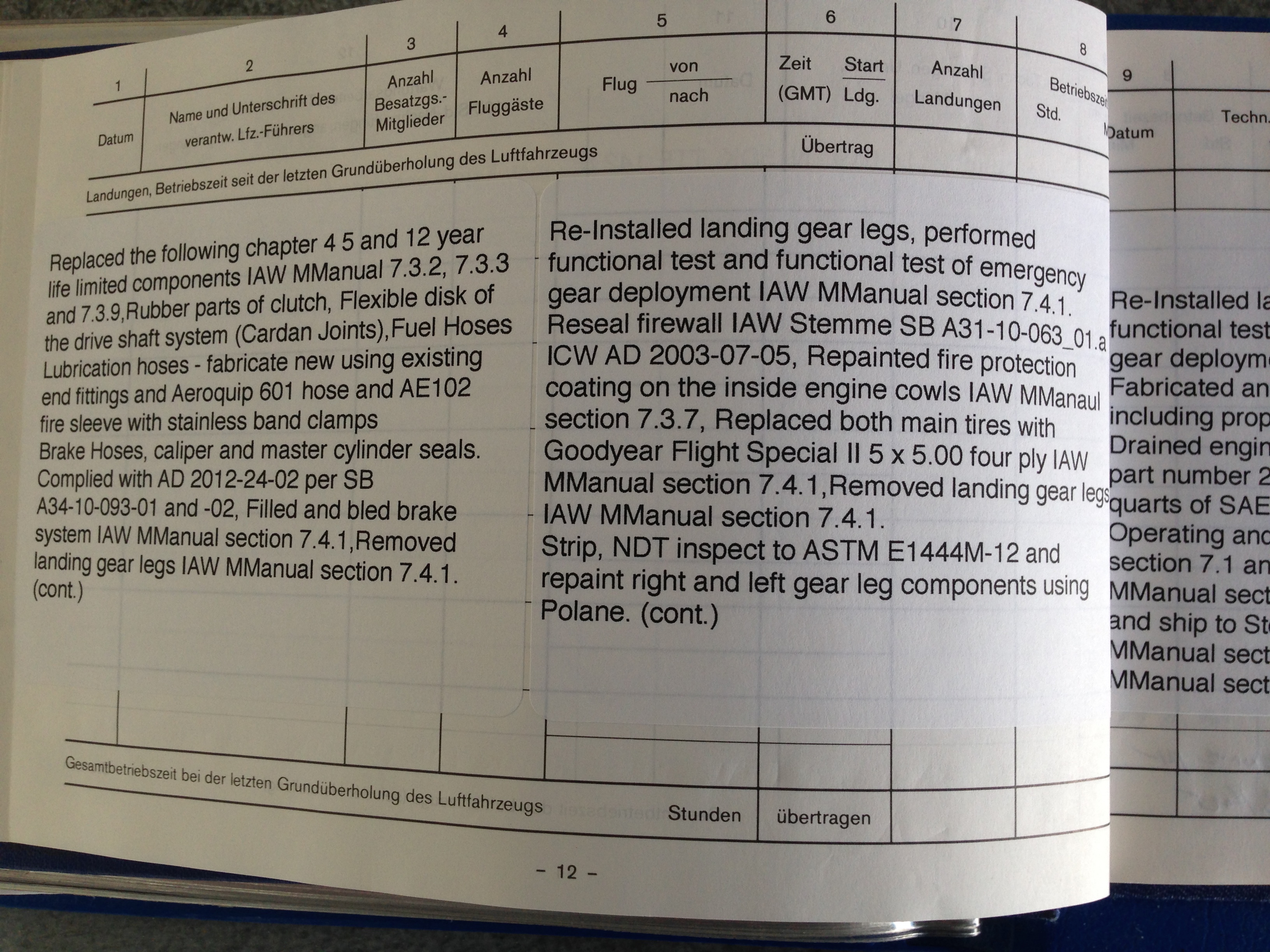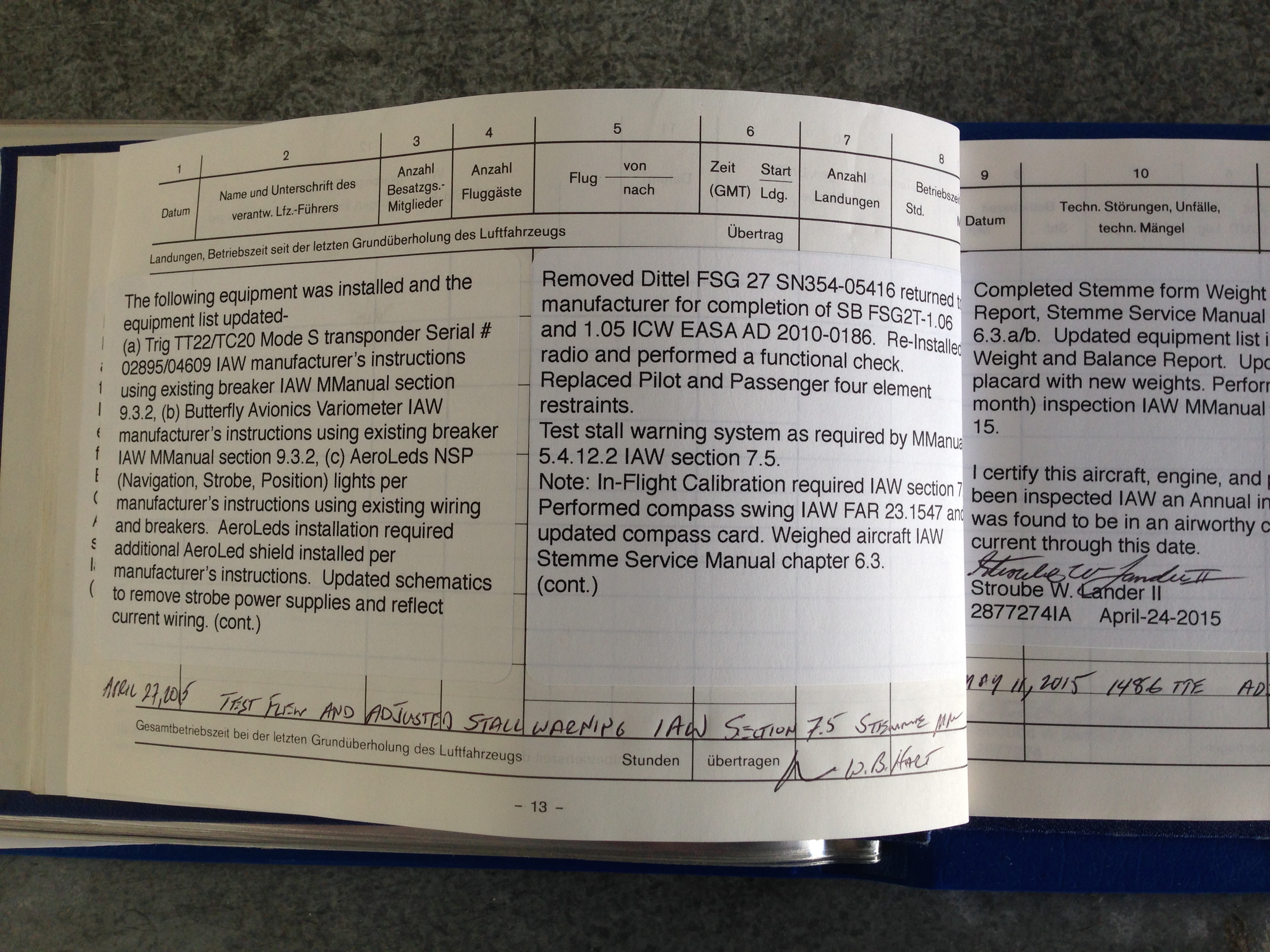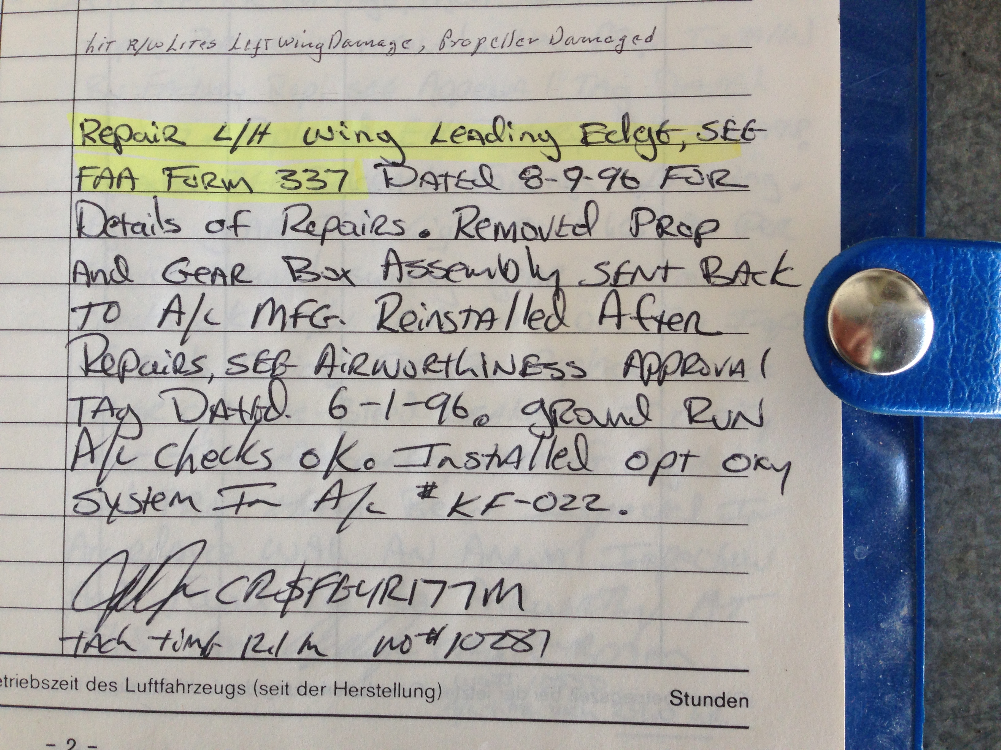 Please find the following log book entries and pictures.