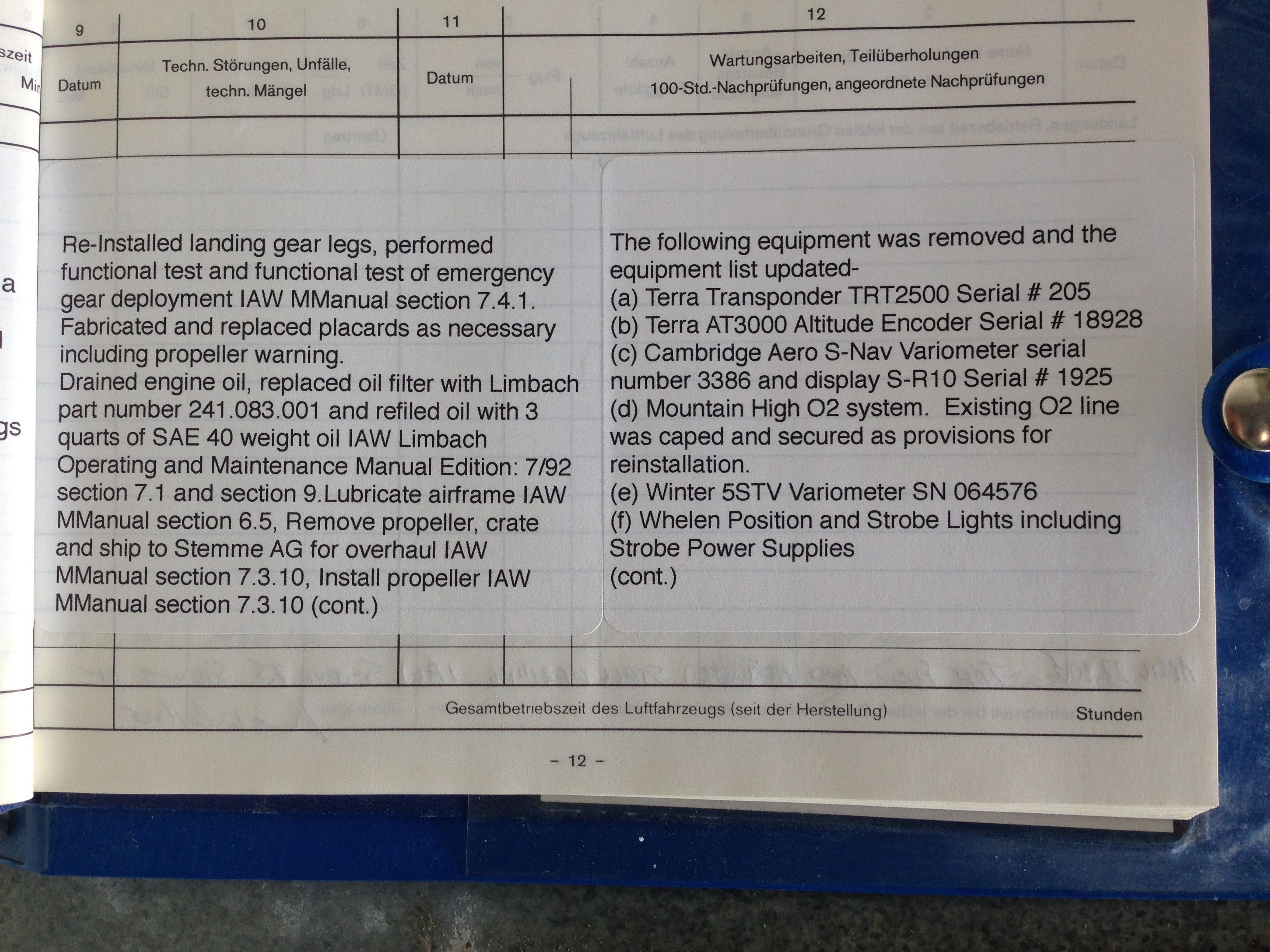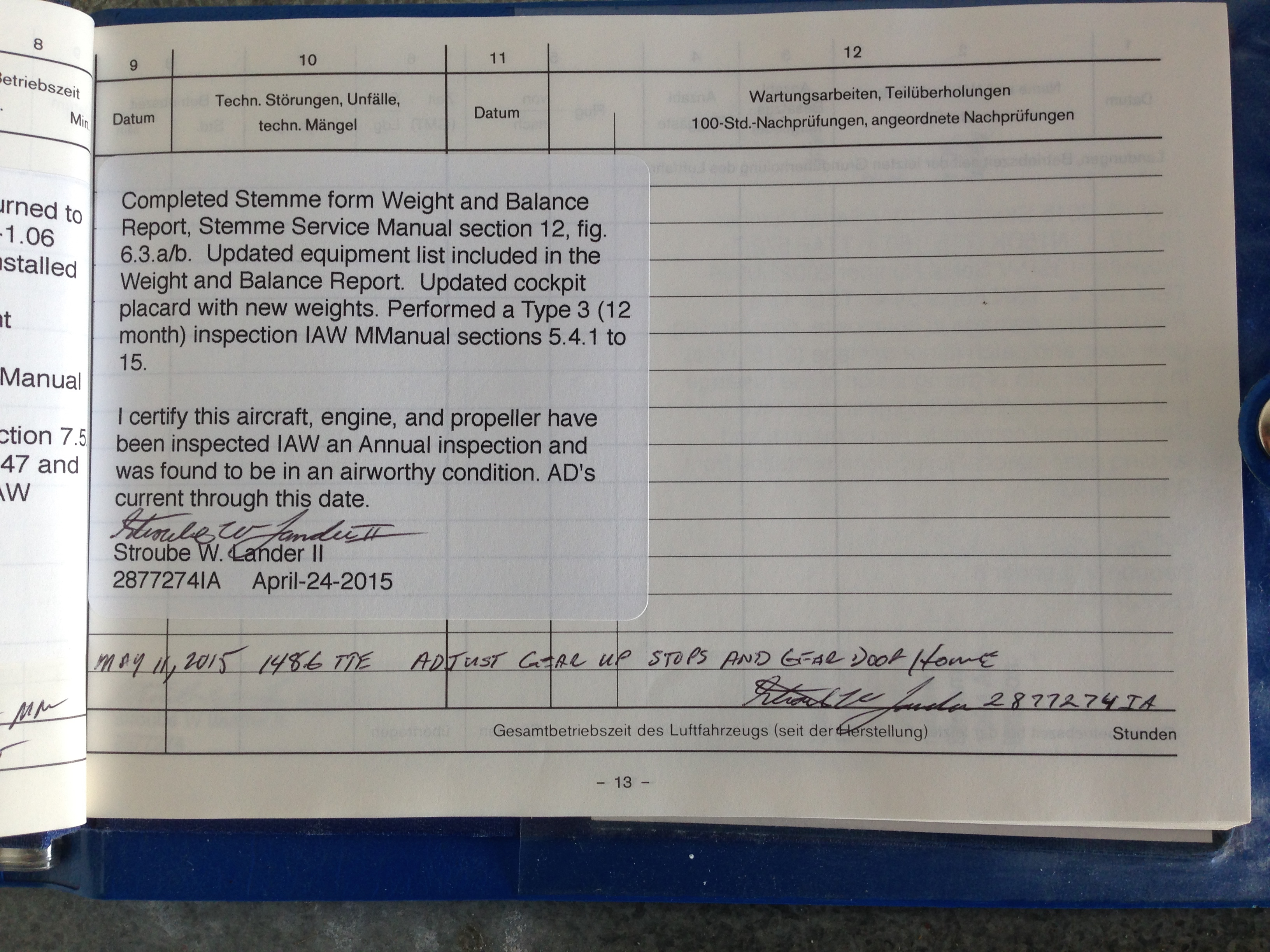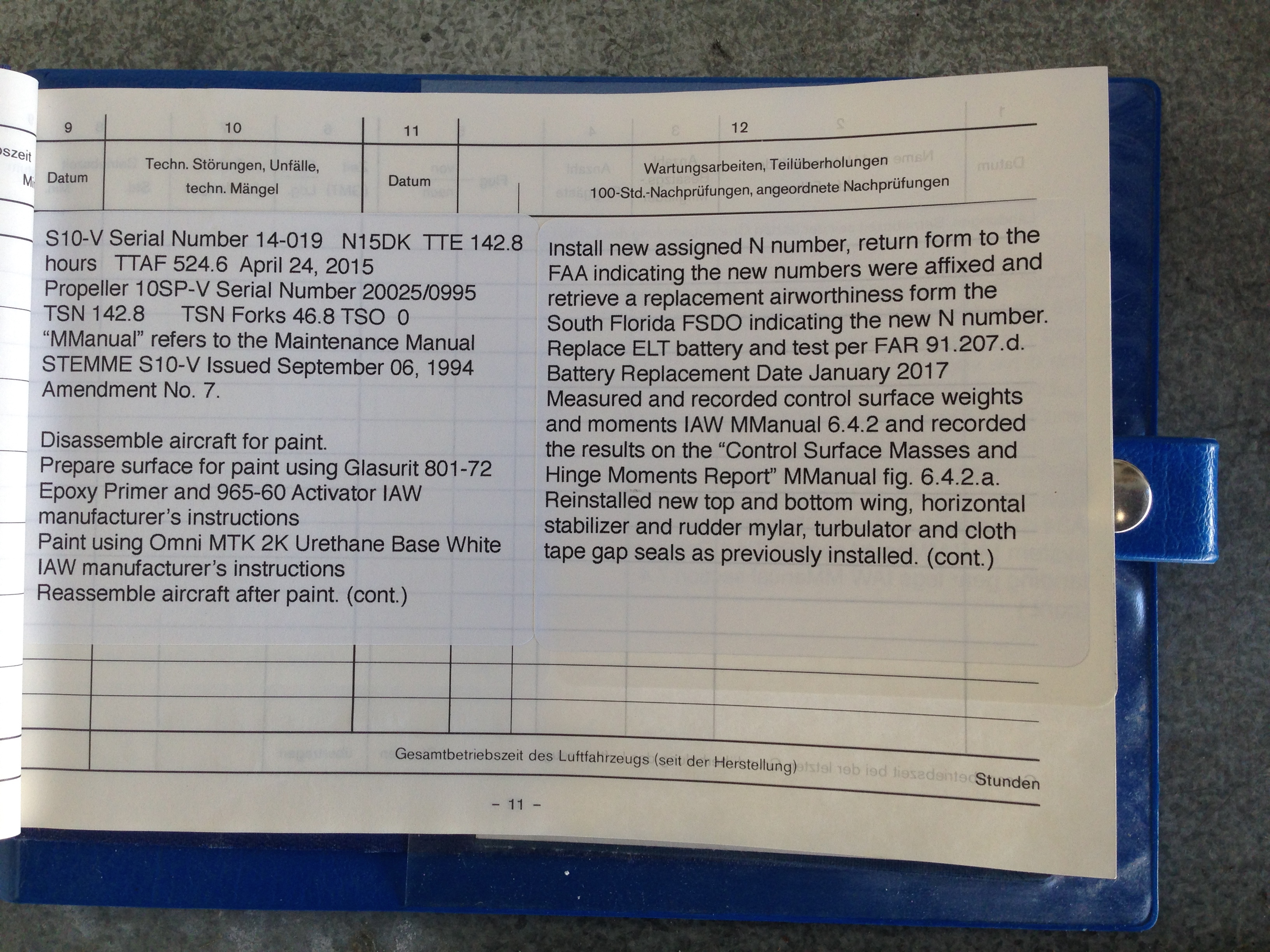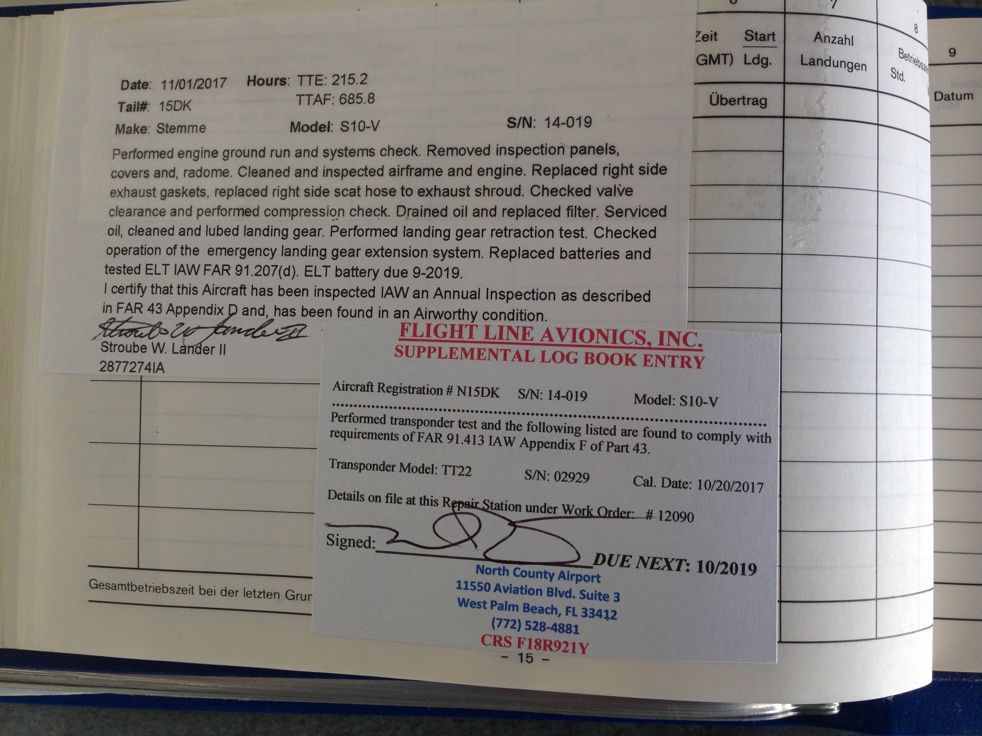 Please find the following log book entries and pictures.