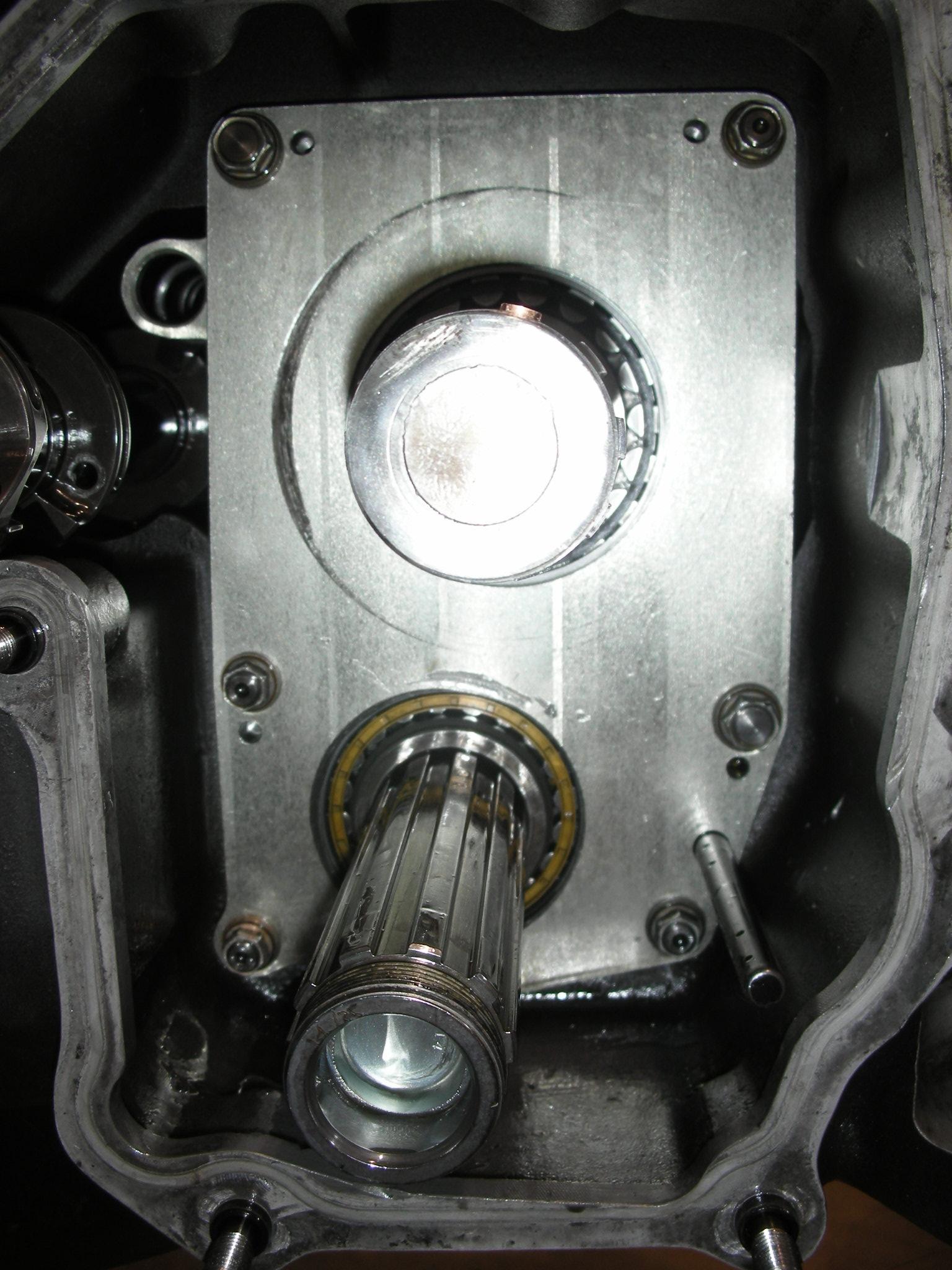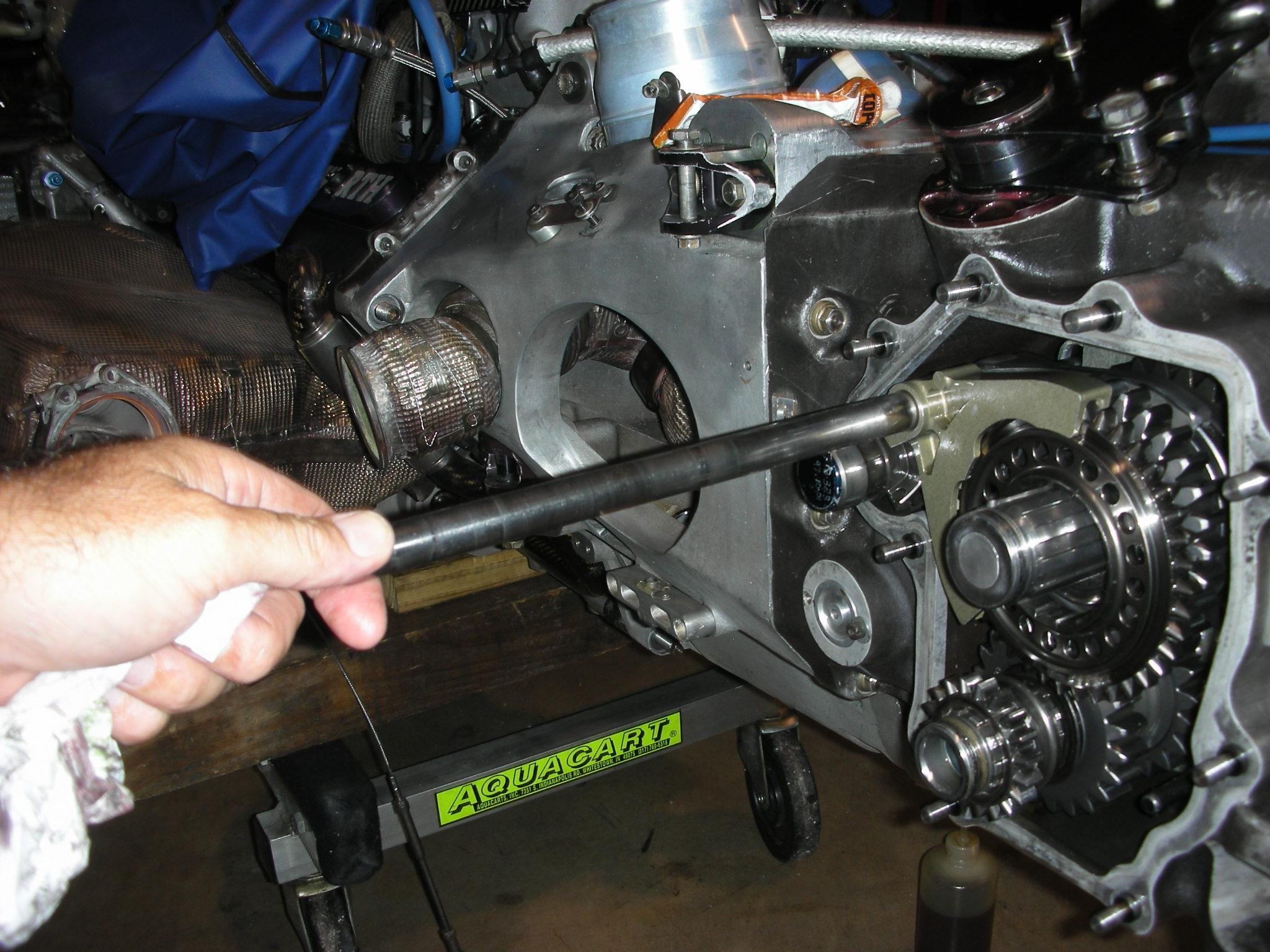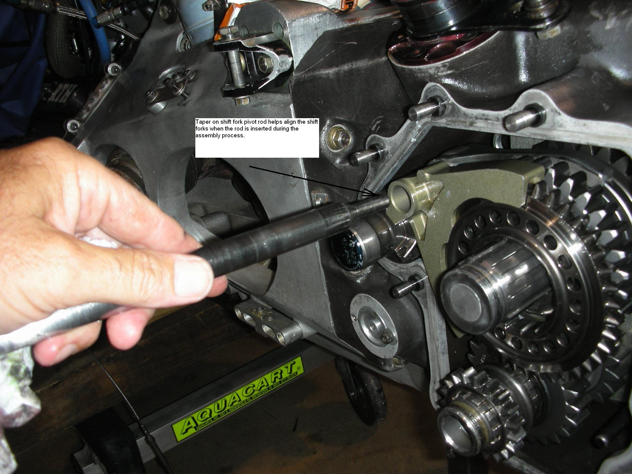 Once the side cover is removed you can pull the shift fork pivot rod and