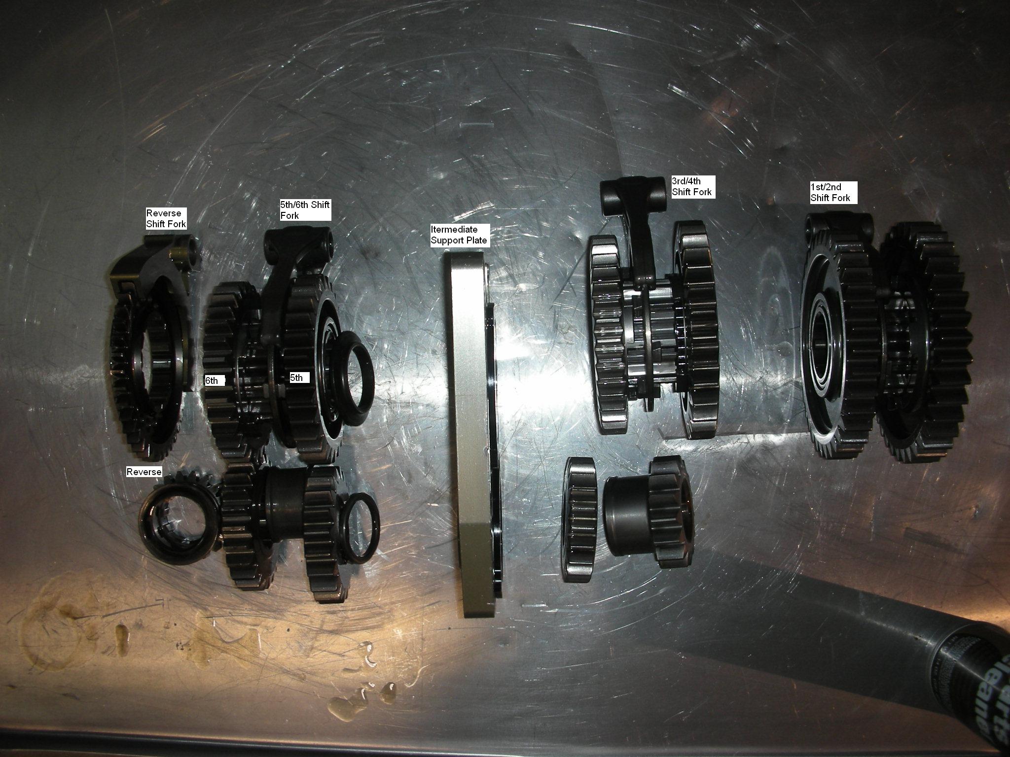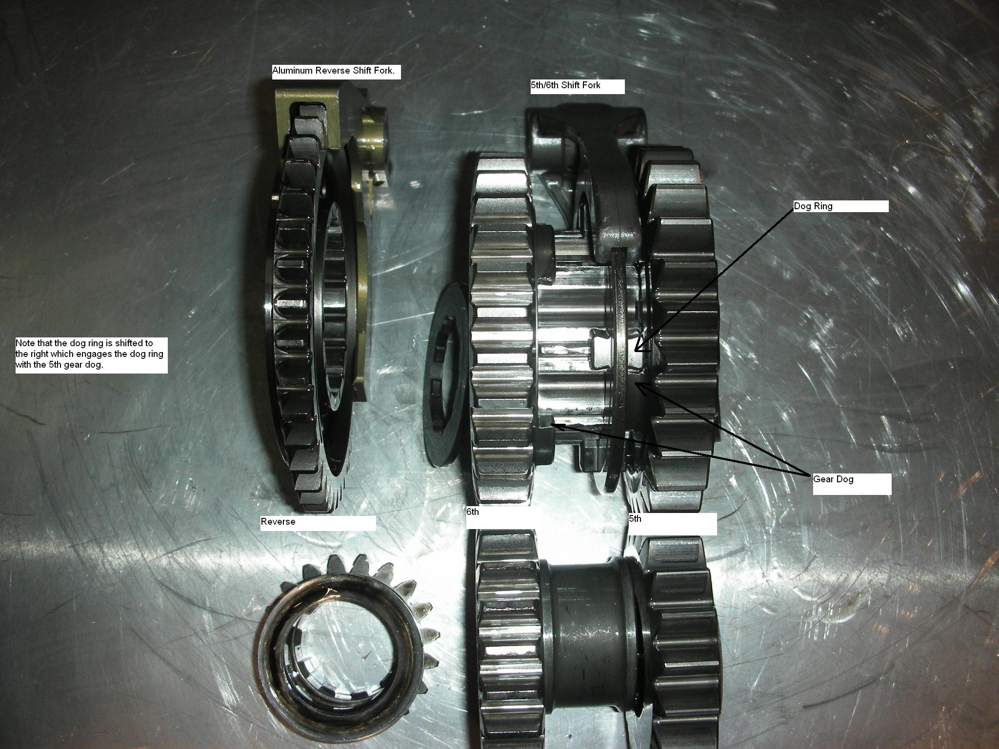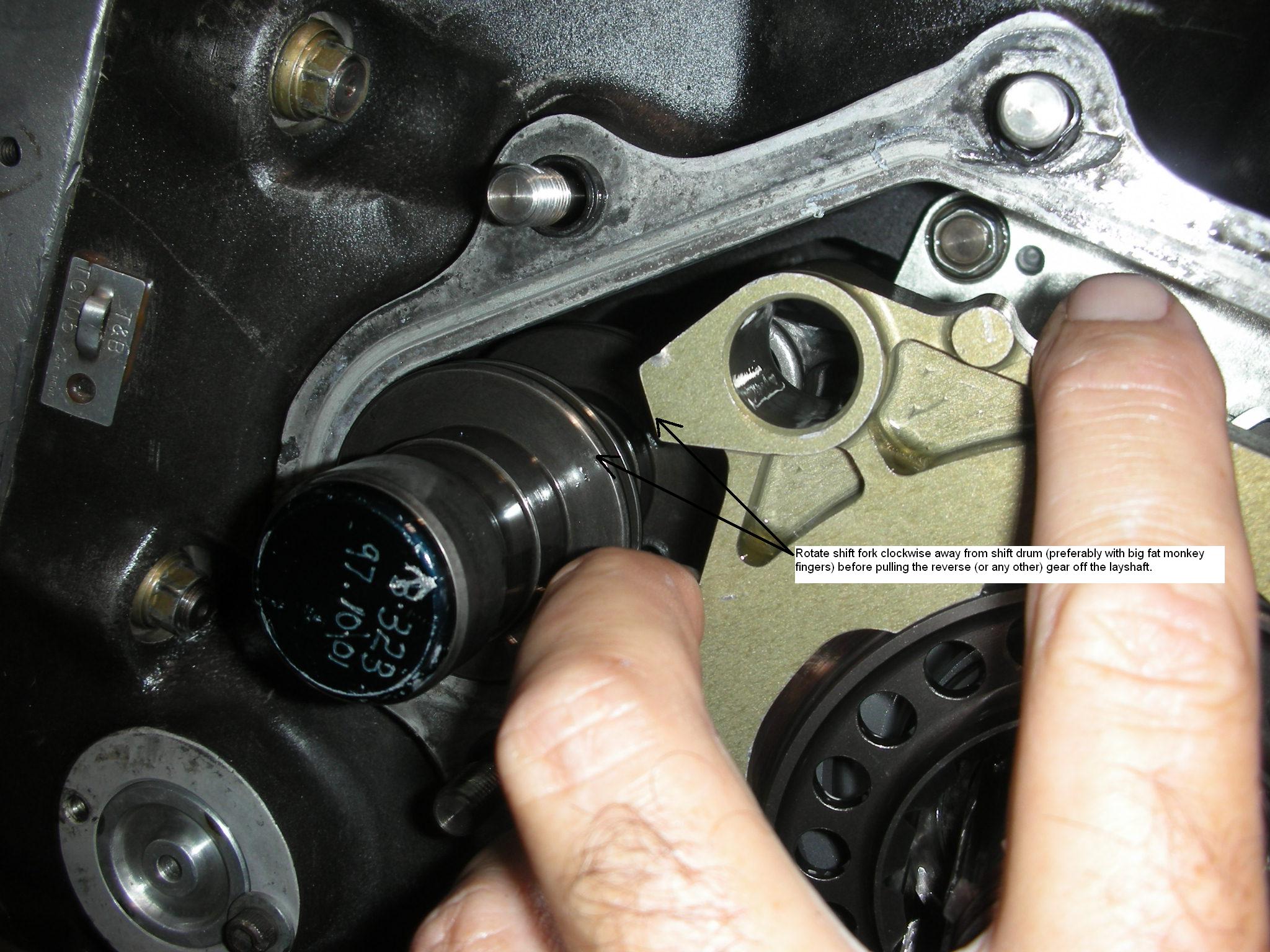 remove the reverse, 6th and 5th gears along with their associated shift forks