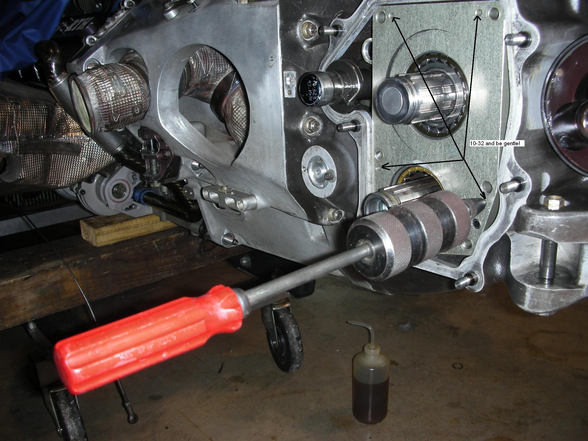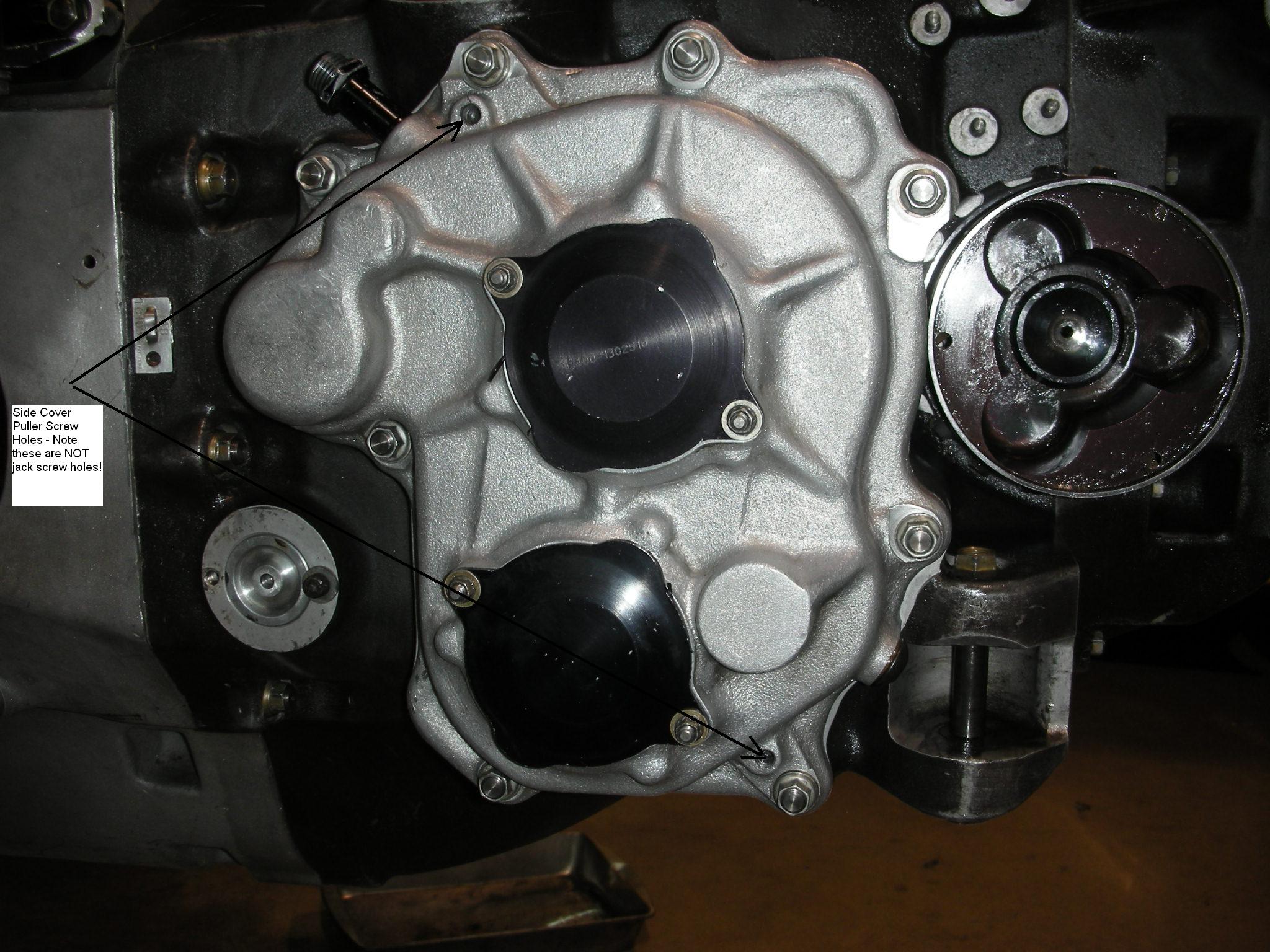 Use two 1/4-20 screws inserted in the gearbox side cover to carefully pull