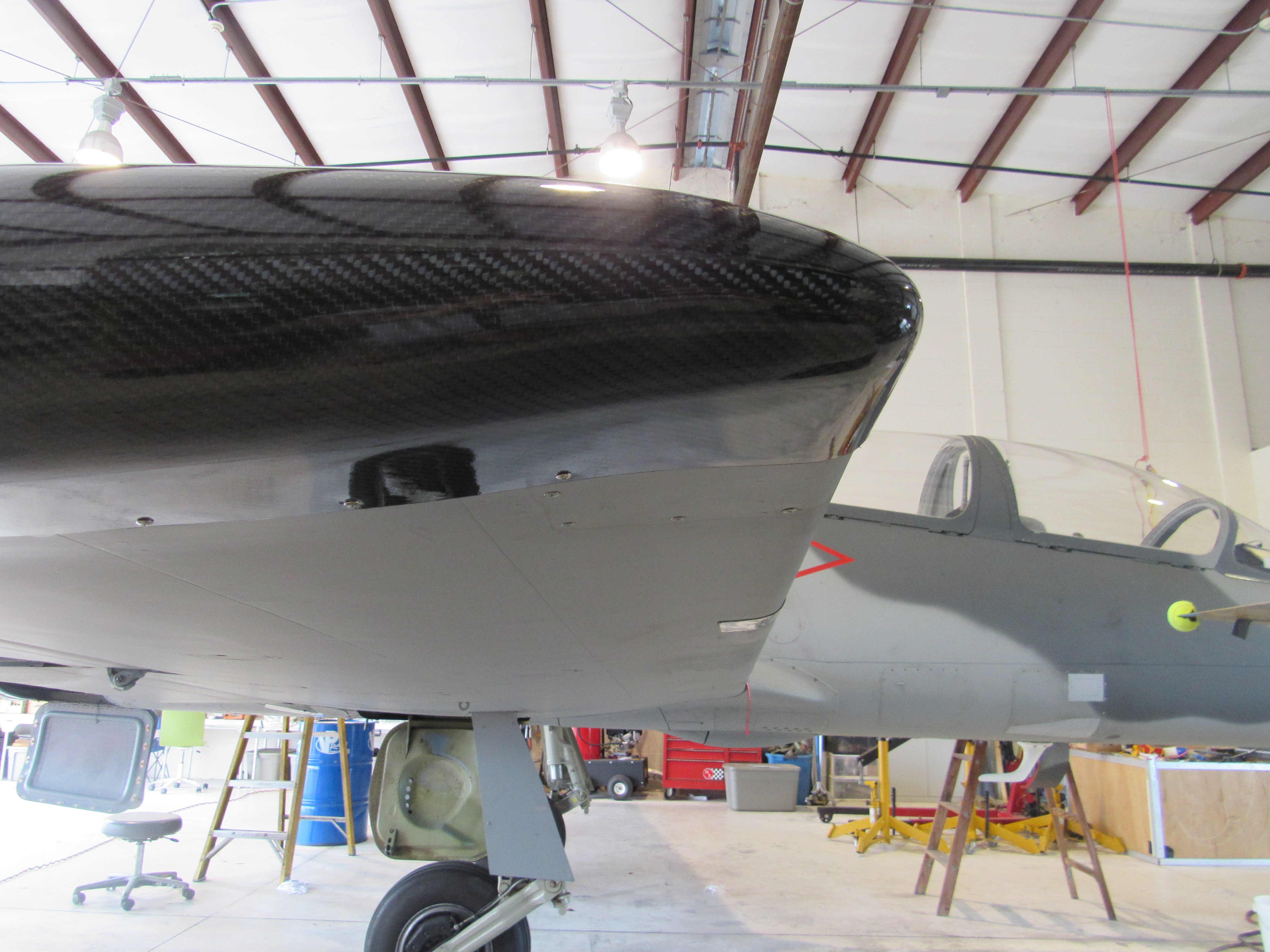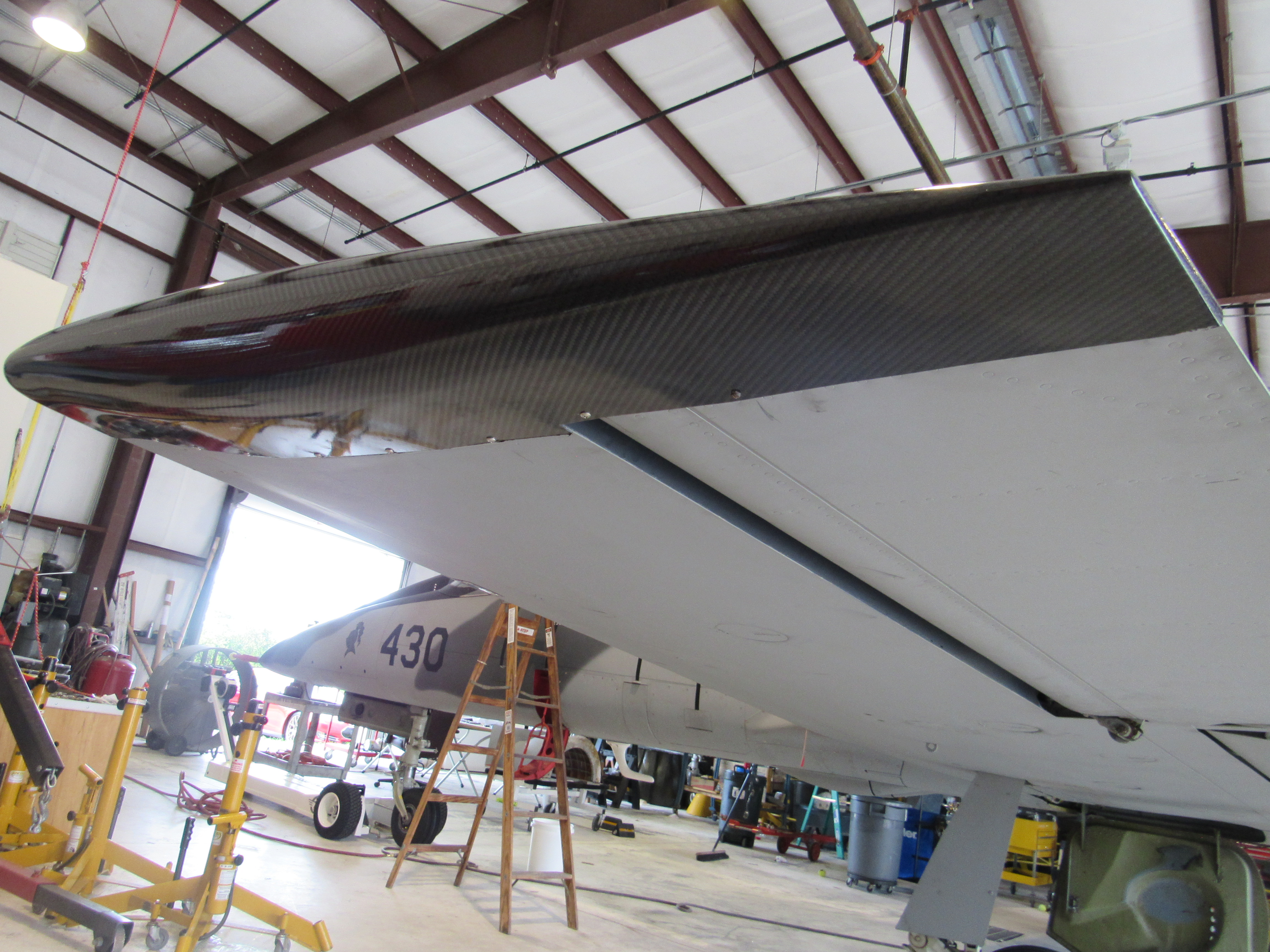 Aircraft performance has a lot to do with weight but drag also affects performance and efficiency. The goal with the UltimateL39 was to clean up the exterior without sacrificing functionality. Antennas were internalized where possible. The tip tanks were replaced with low profile wing tips. Tip tanks are used primarily to increase loiter time on target and, although a little helpful, do not dramatically increase cruise endurance. You literally gain back almost as much from drag reduction by removing the tanks as you get from the fifty gallons of fuel having them. In a rather extreme effort, the dual wing mounted pitot/static booms were replaced with a single nose mounted unit. Although not likely responsible for huge gains, these changes have helped.