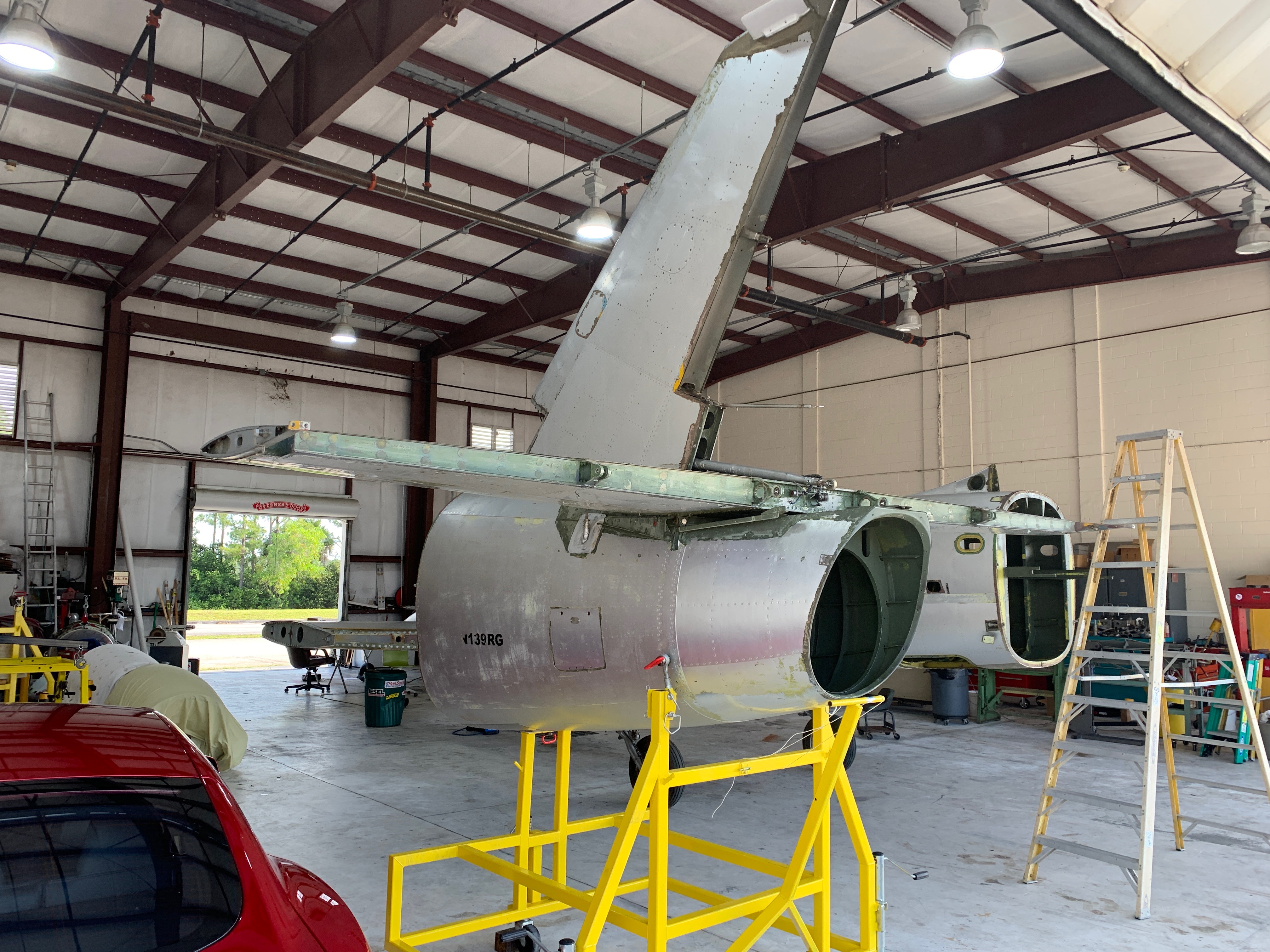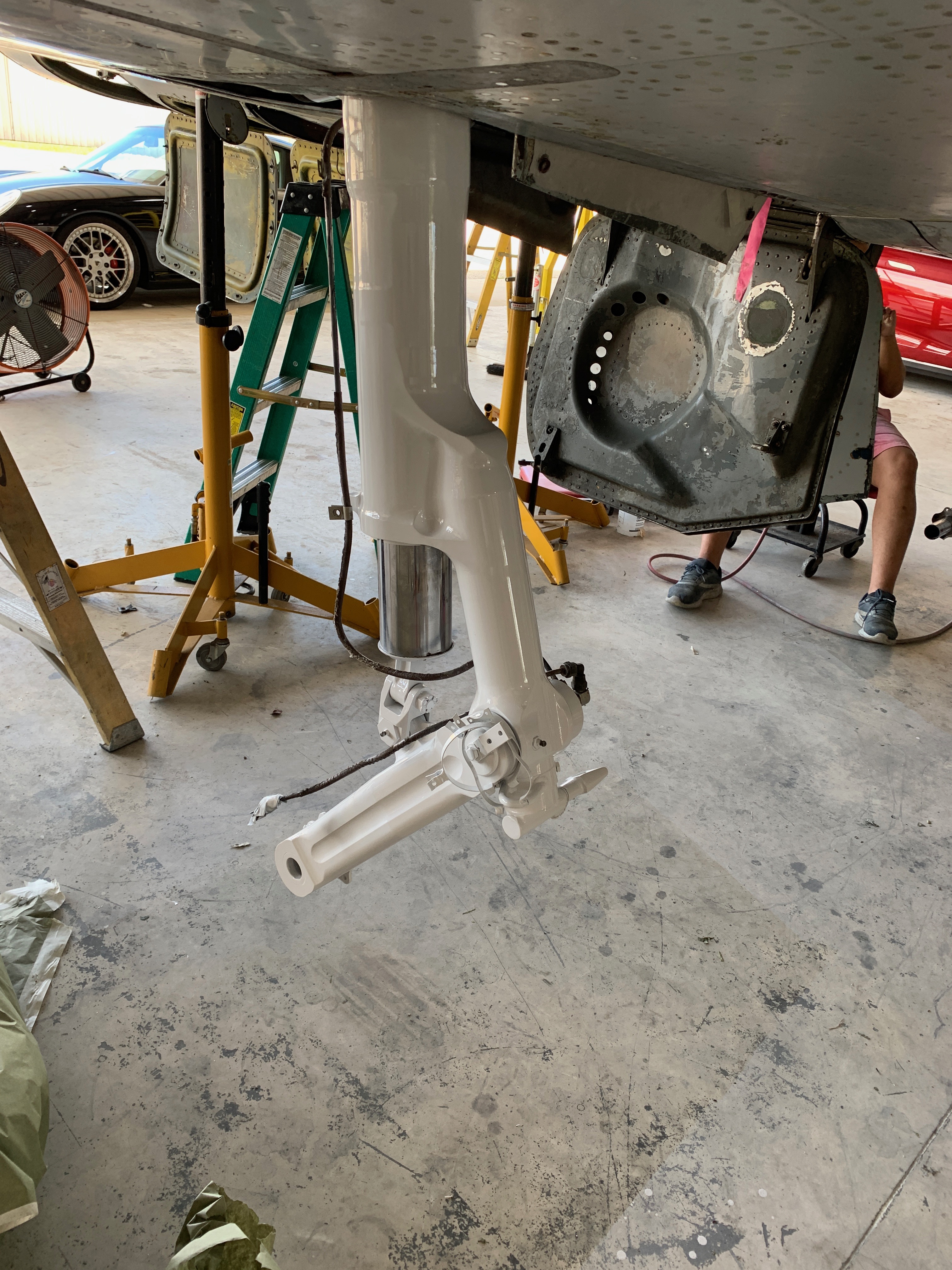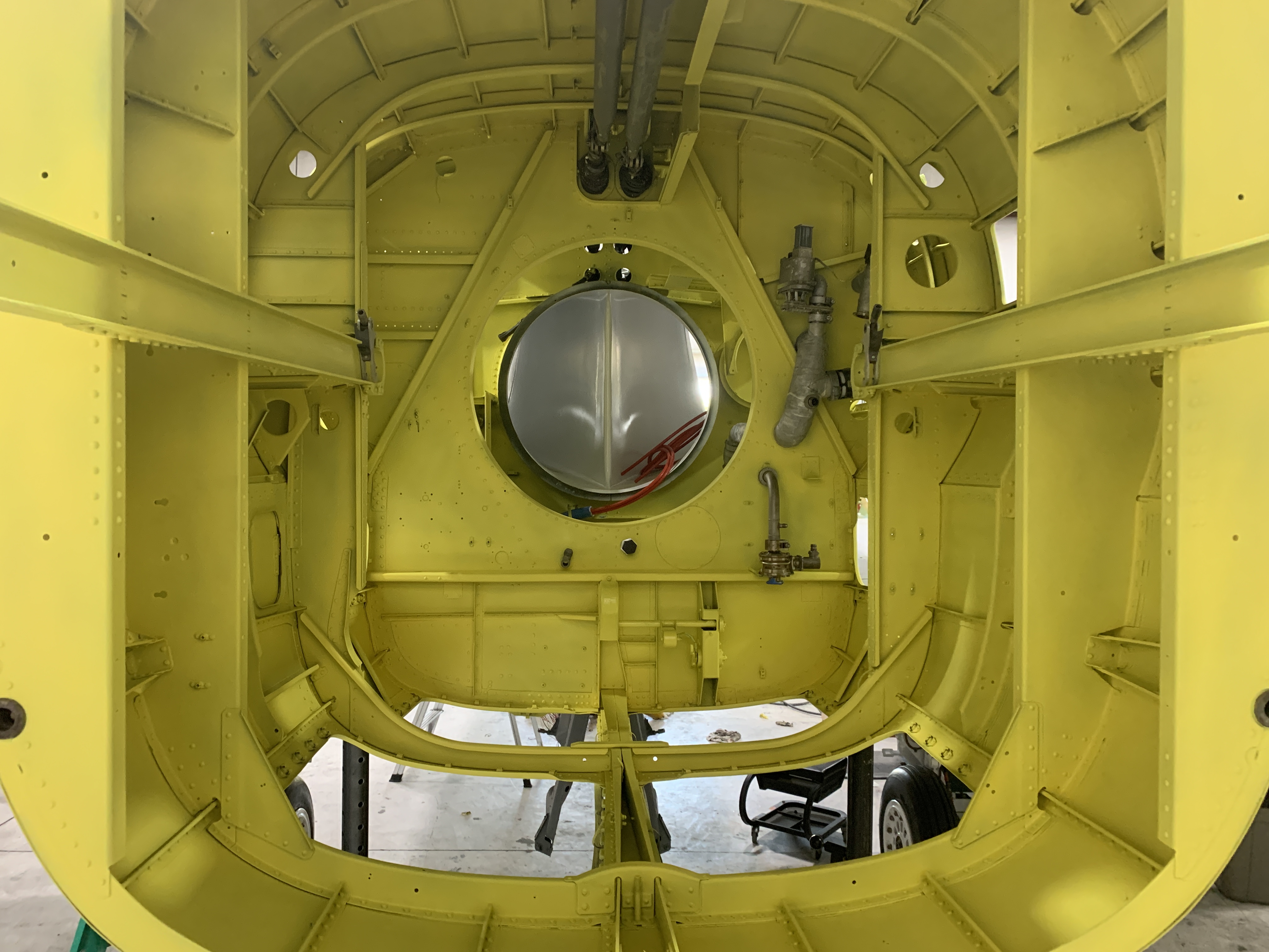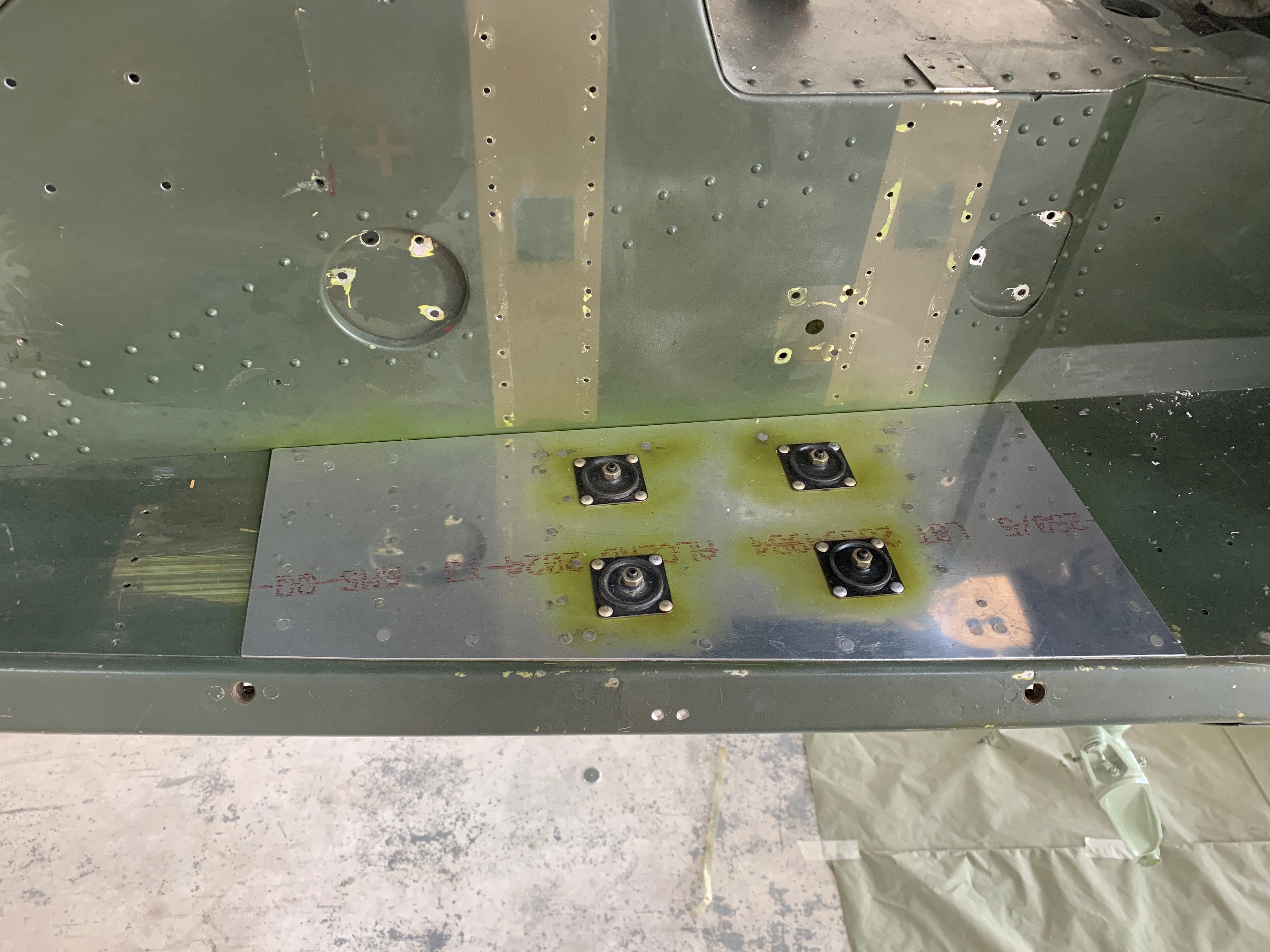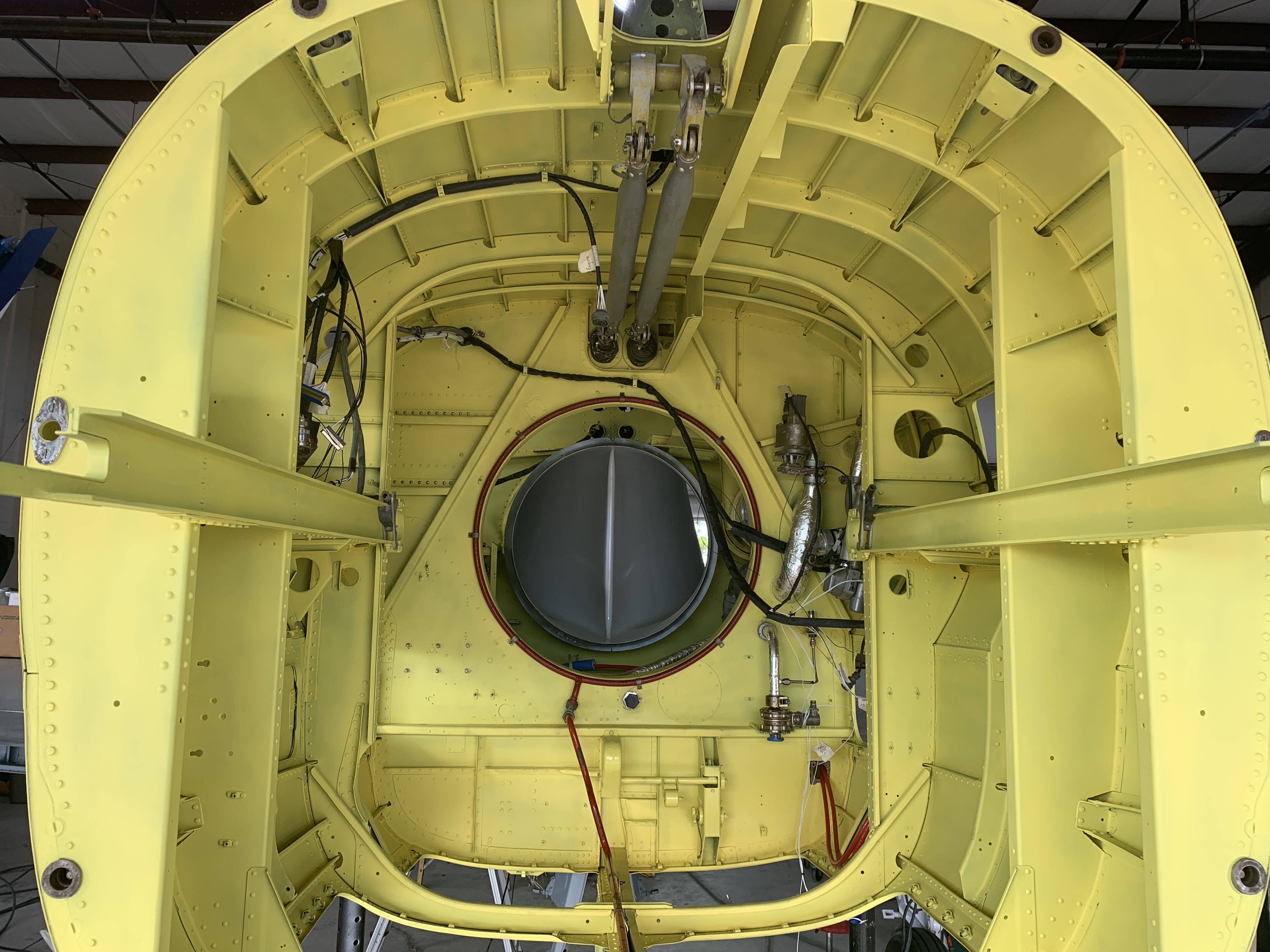 The plane's paint has been stripped and we are now doing all the sheet metal work along with moving the hydraulic reservoirs to the nose to be closer to the improved higher volume electric hydraulic pump pack. Having all elements in the nose bay in place of the old O2 bottles allows easy preflight of hydraulic fluid level and both primary and emergency accumulator charge. All of this and there is still all the room in the nose bay for baggage.