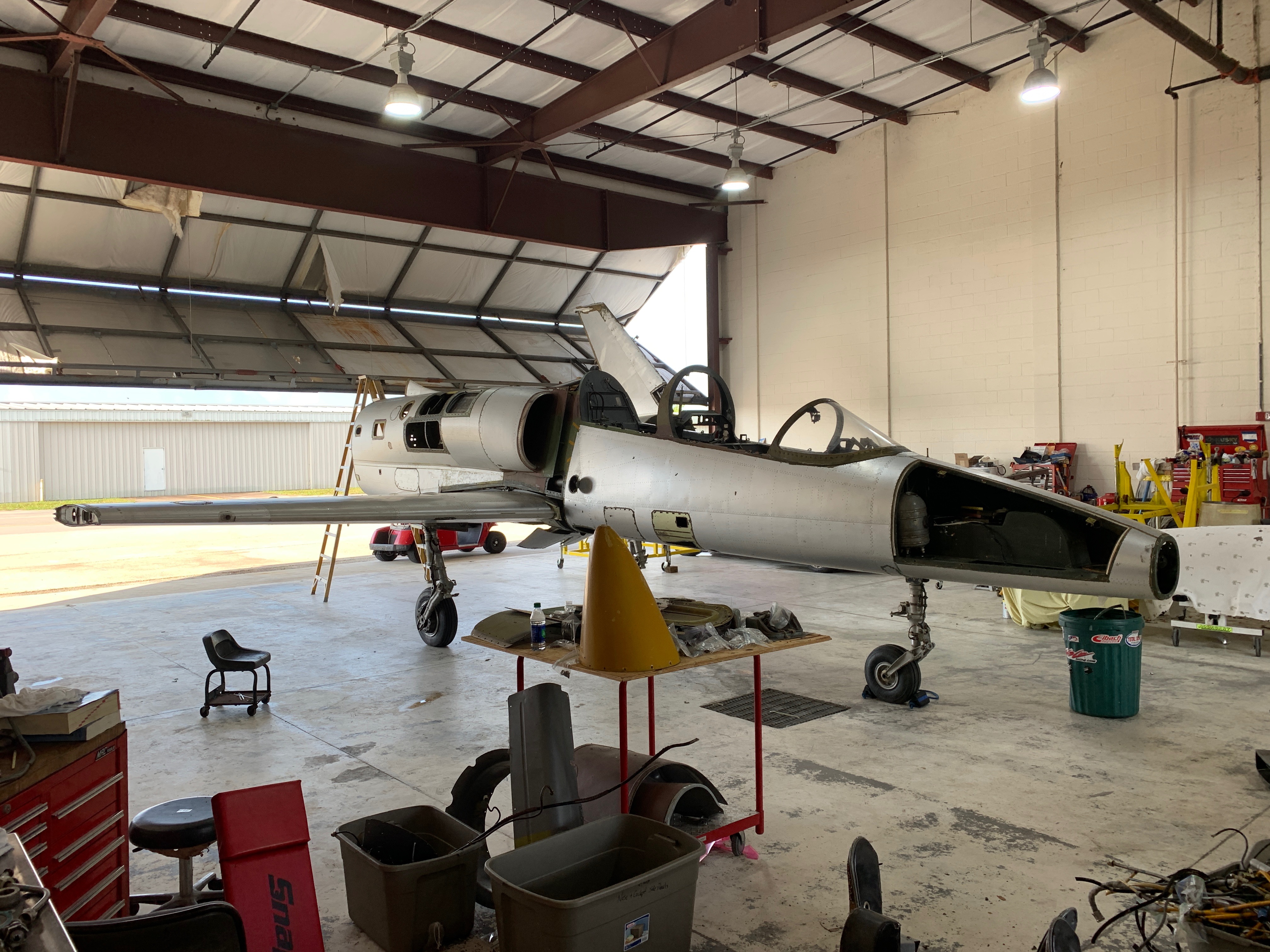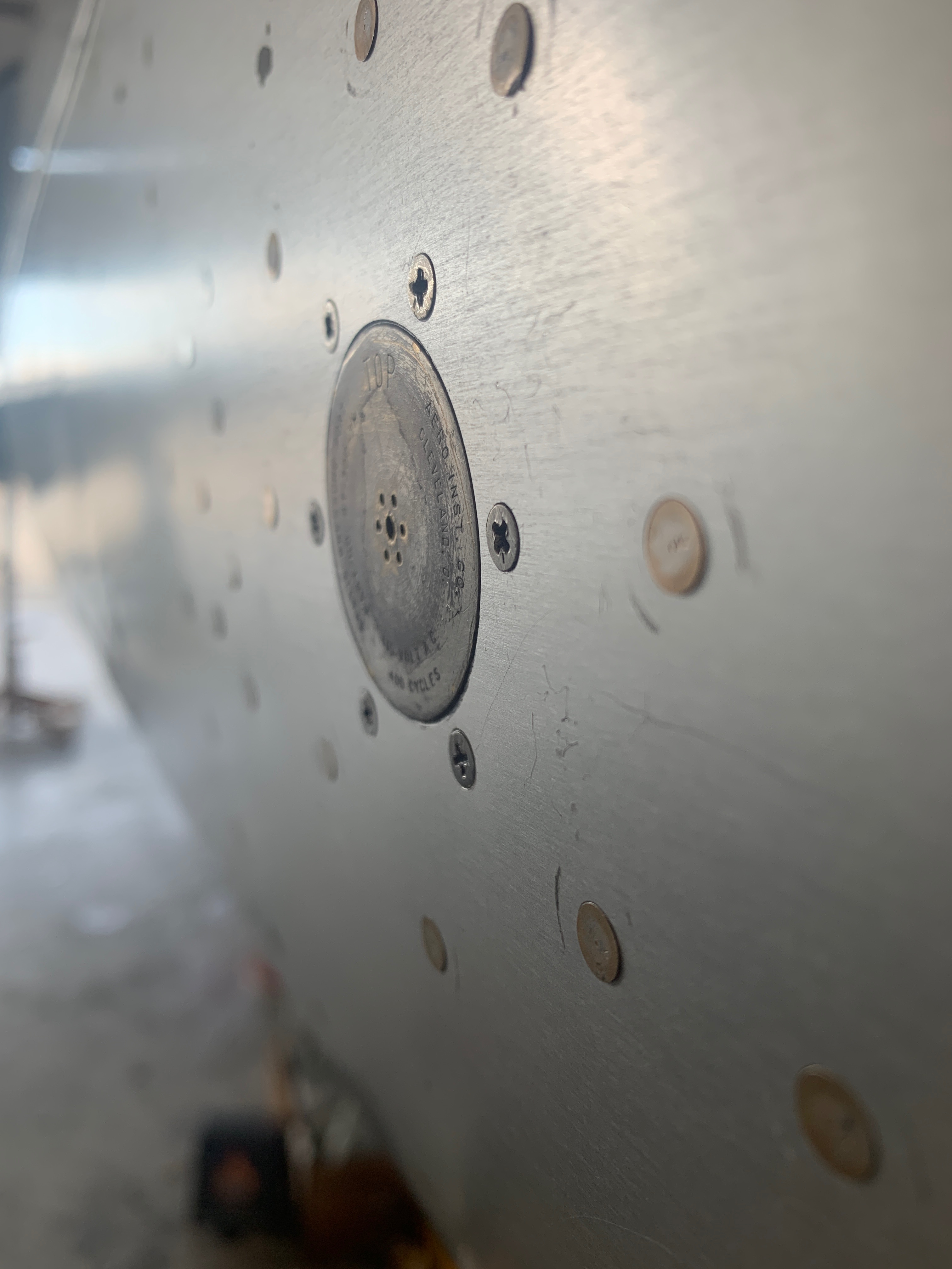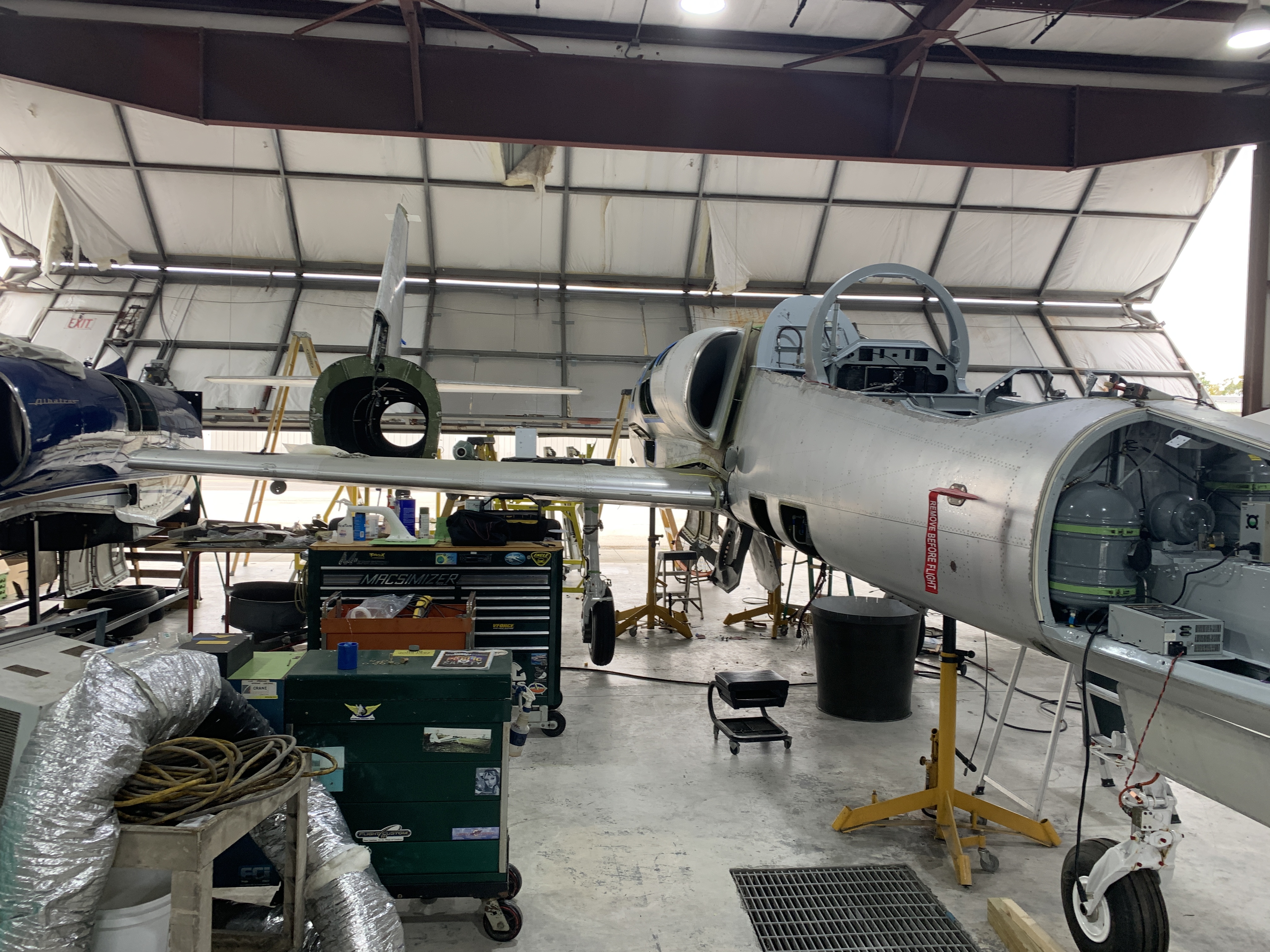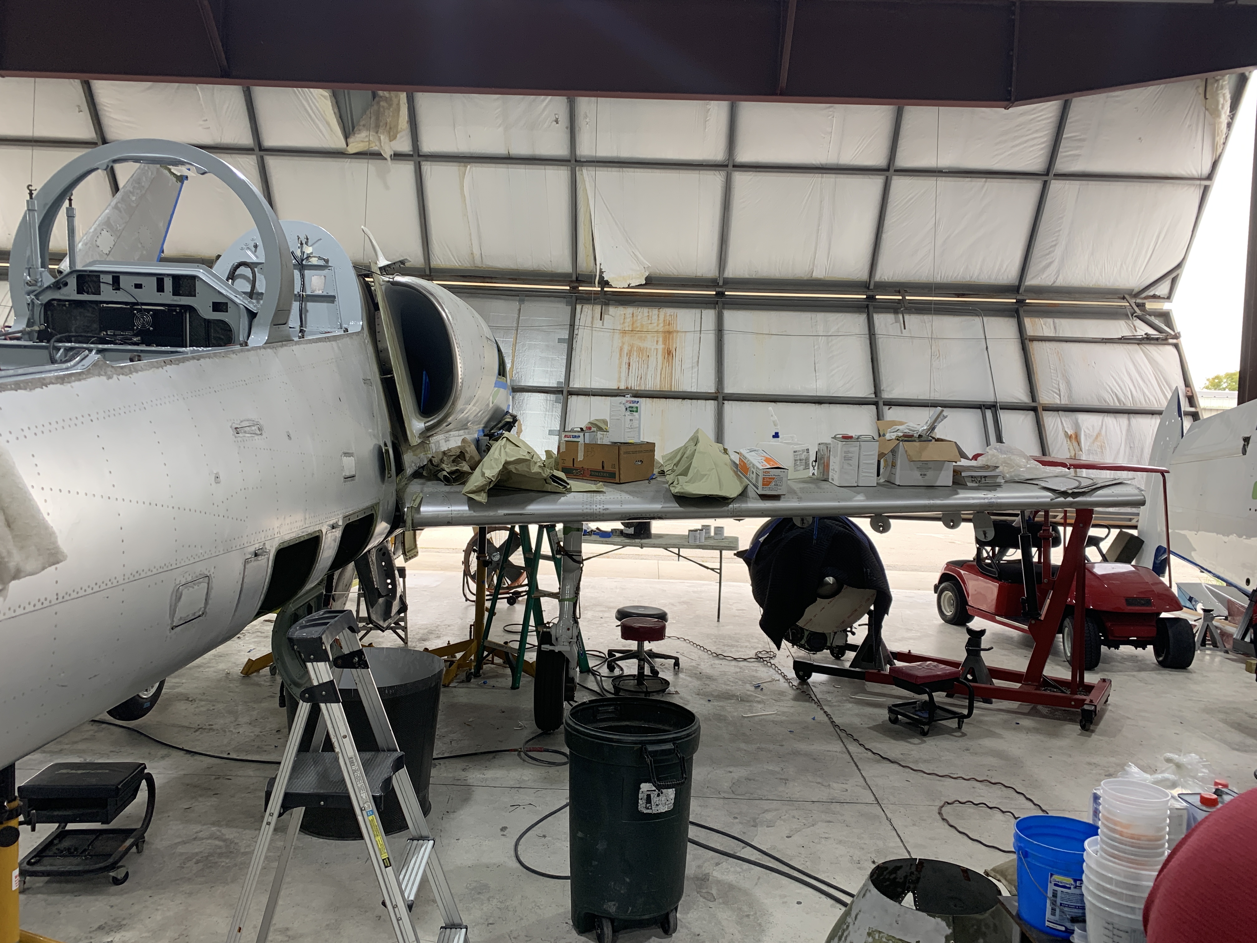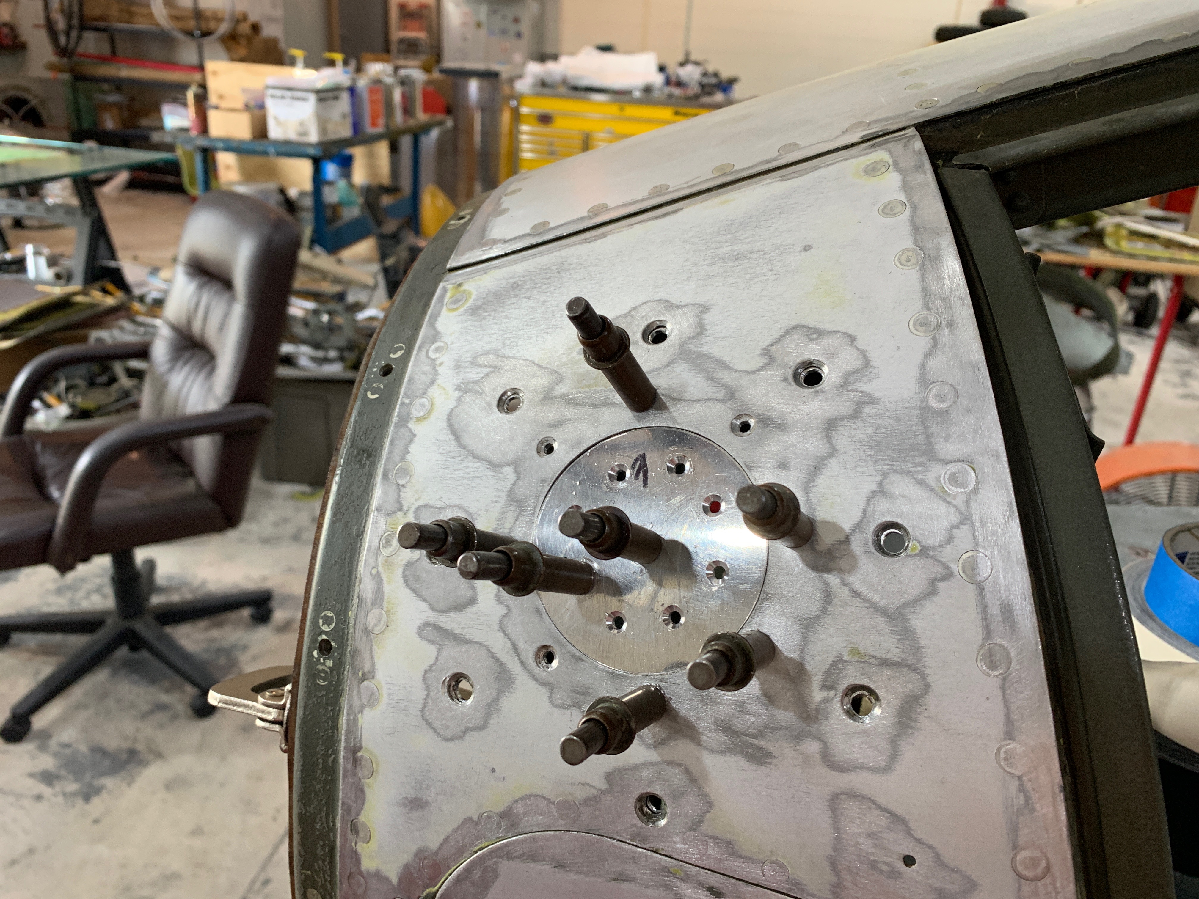 The plane's paint has been stripped and we are now doing all the sheet metal work along with moving the hydraulic reservoirs to the nose to be closer to the improved higher volume electric hydraulic pump pack. Having all elements in the nose bay in place of the old O2 bottles allows easy preflight of hydraulic fluid level and both primary and emergency accumulator charge. All of this and there is still all the room in the nose bay for baggage.