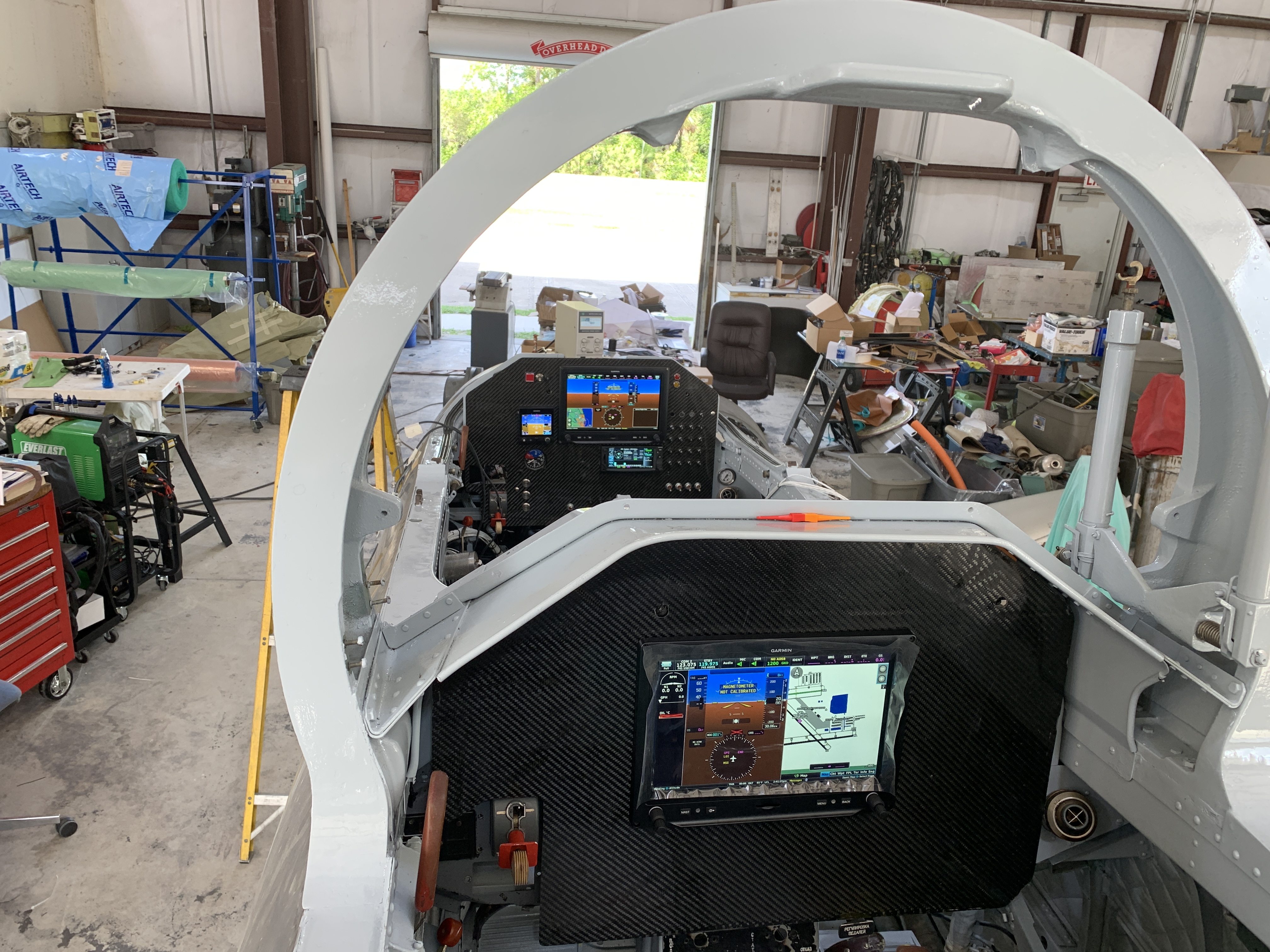 Most of the completely new wiring system has been tested. The avionics are up and running and primary systems like trim, air brake, gear, ACM and the like have been verified. The engine bay sheet metal work is done and it is being prepped for paint (pictures below). Once painted, the motor can go in and all related sensor and starter/generator functionality can be tested.