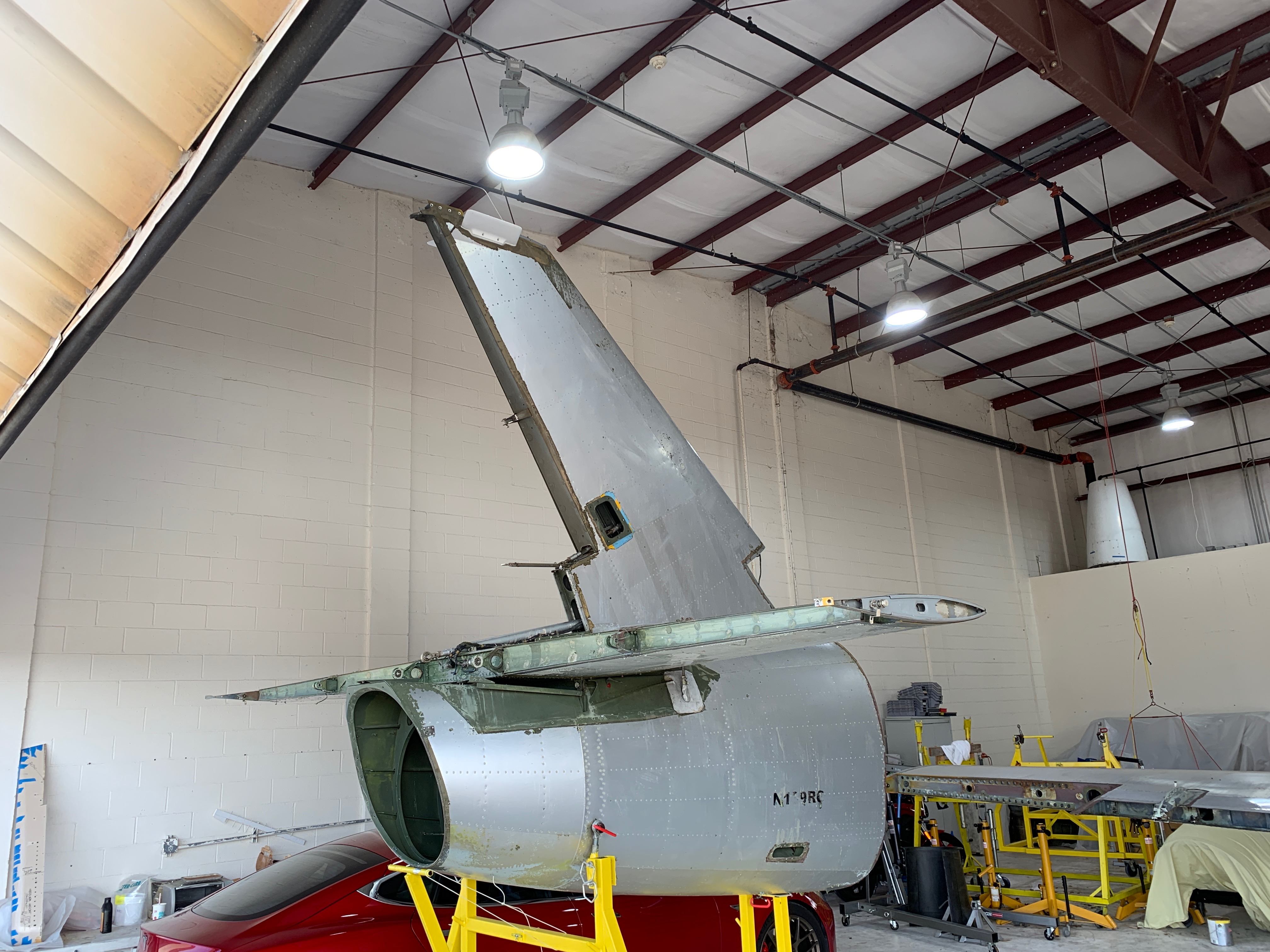 Well, UDuck is becoming Mallard. First it was stripped of all the old elements having anything to do with the AI-25 motor, original avionics, APU, RAT or tip tank fuel system. This is what it looked like just removing everything. Every unused bracket and brace for the removed systems is also being removed.
