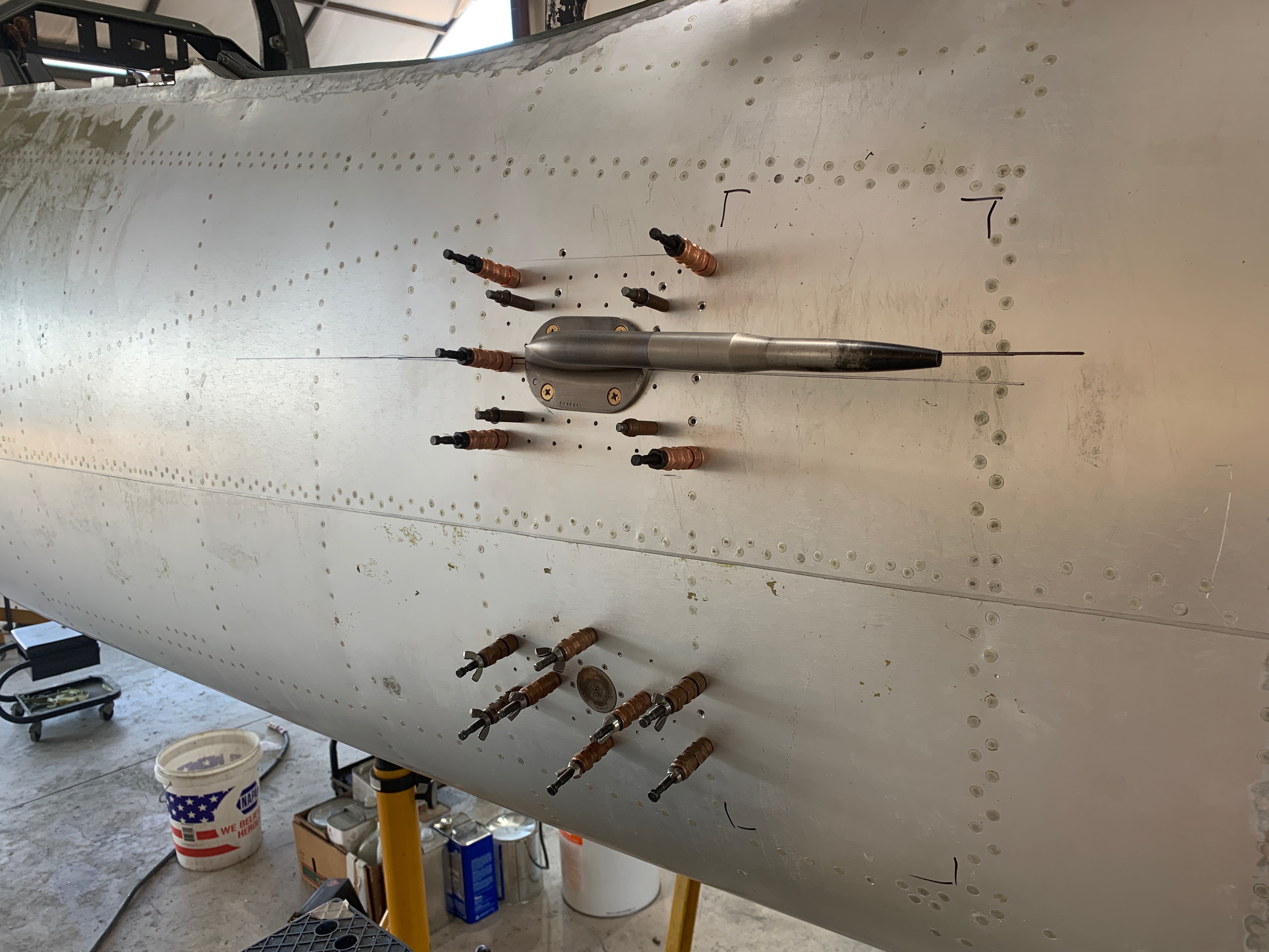 Gear and inlets are painted and give me great hope for the cockpit and the remainder of the airframe. The pitot/static system is finishing installation. We used Challenger components to ensure they would stand up to the punishment to come. The original L39 pitot tubes mounts are being flush patched...... Installation is complete awaiting overall paint.