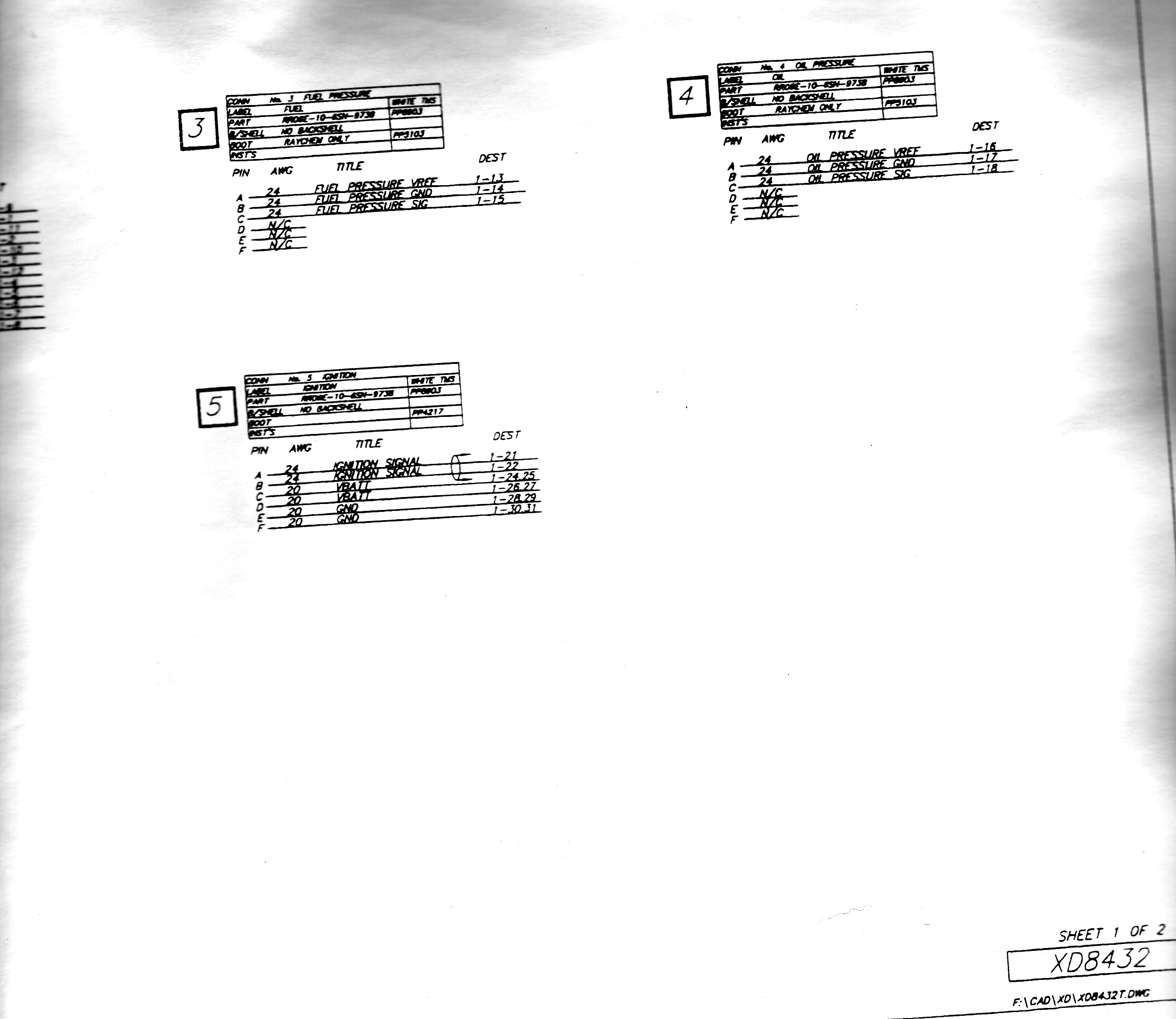 Make sure the pickle box is not pumping fuel then pull the plugs, install them in the plug pack and ground the plugs and plug pack (you can see the grounding pads at the plug pack mounting holes) then test for spark (ECU and IGN on and crank for a second or two). If XD monitor shows RPM and you do not have spark with the IGN switch on then it is time to troubleshoot for lost spark. First test for voltage at the connector to the spark box when the IGN switch is turned on. I have added the portion of the Lola wiring loom schematic that covers connection to the spark box in the pictures below. If the wiring harness is supplying voltage to the spark box, verify the presences of an ignition signal to the spark box using an oscilloscope. I have not done this so I can not tell you what the signal will look like. If you have voltage and signal to the spark box then the problem is probably the spark box and/or coil packs. Swap each until you get spark then reassemble and start.
