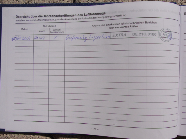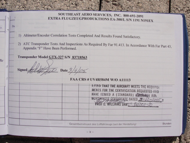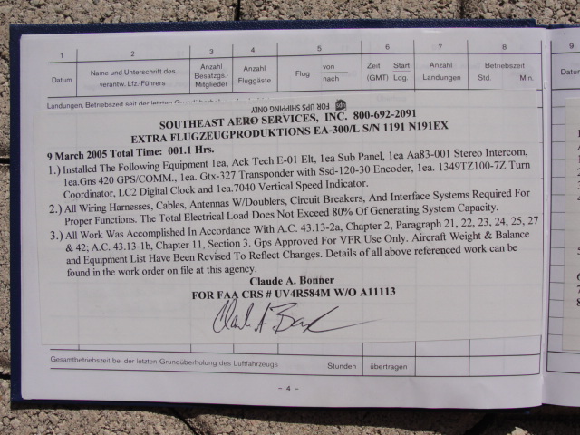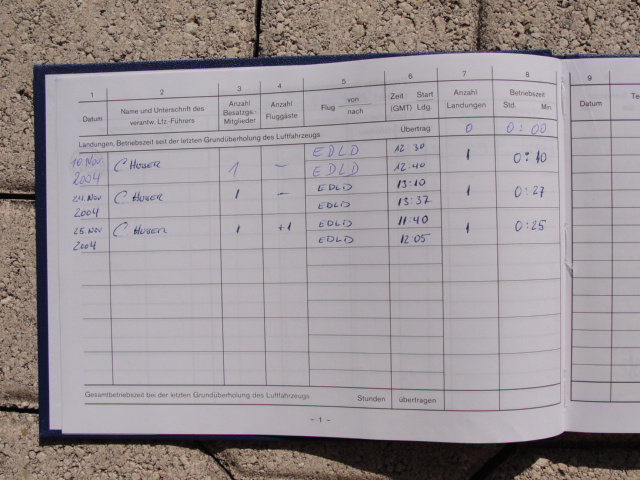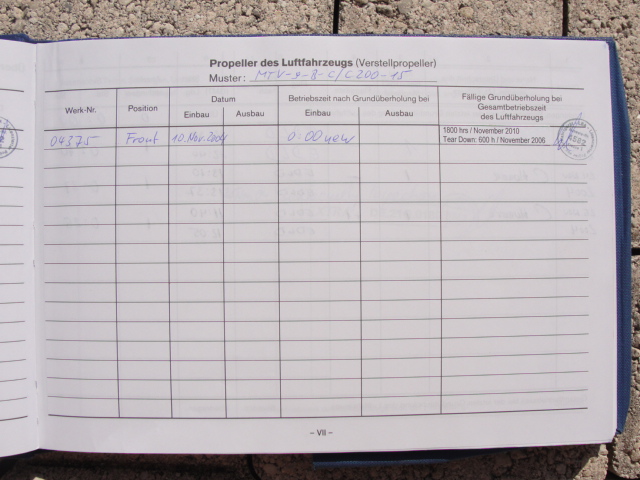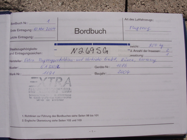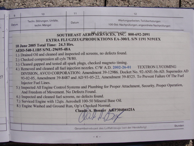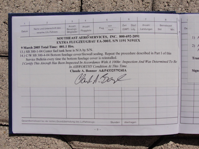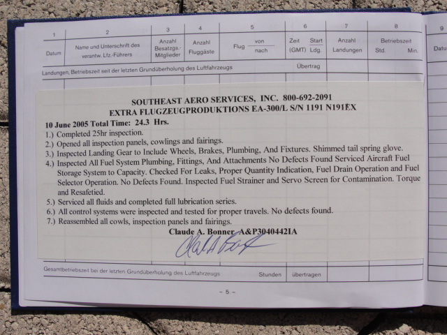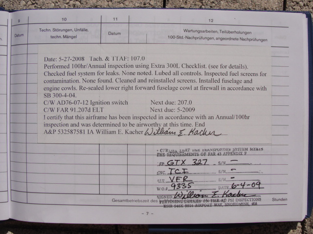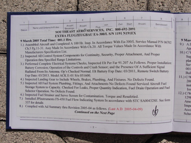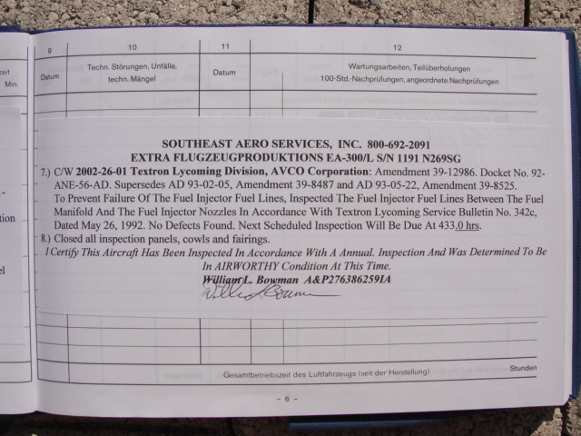 These are photos of the N269SG's airframe log book as of January 3, 2011. Note that there is a left and right page for each page number. For example, you will see two photos below, each having an "8" at the bottom. This would be a photo of the left and ride side of "page 8".