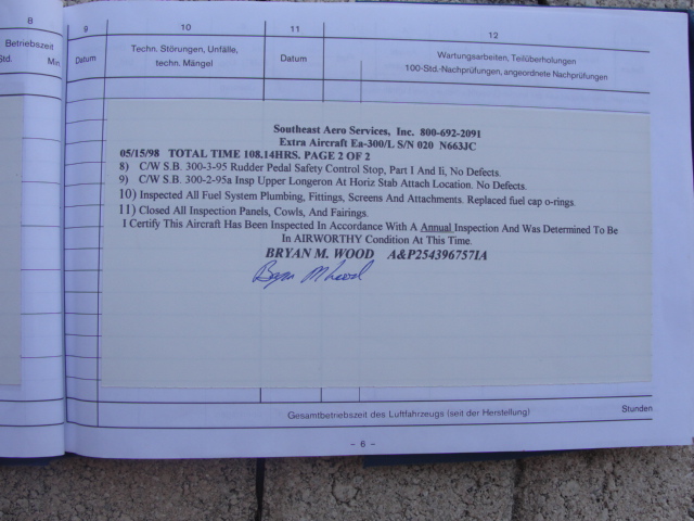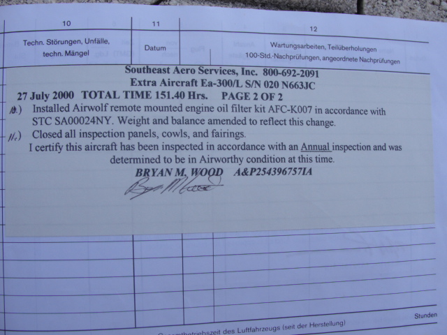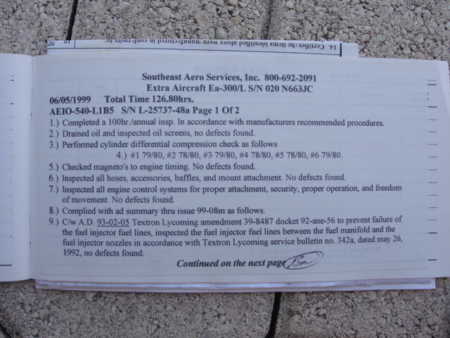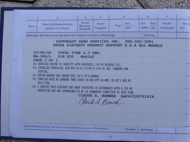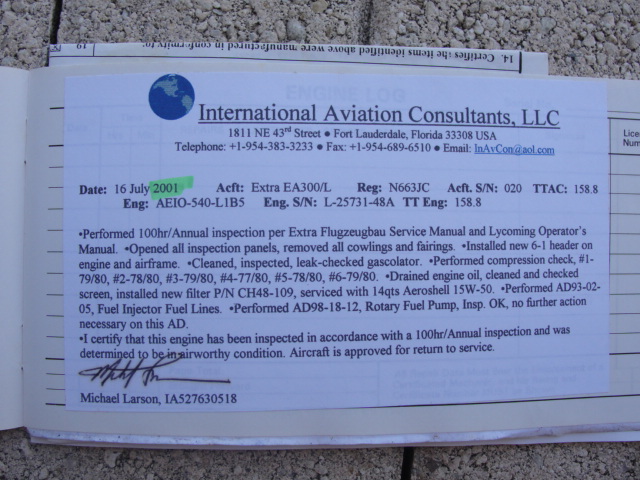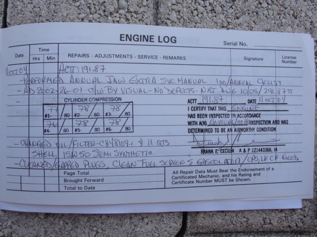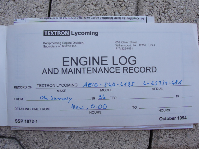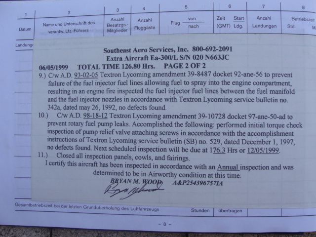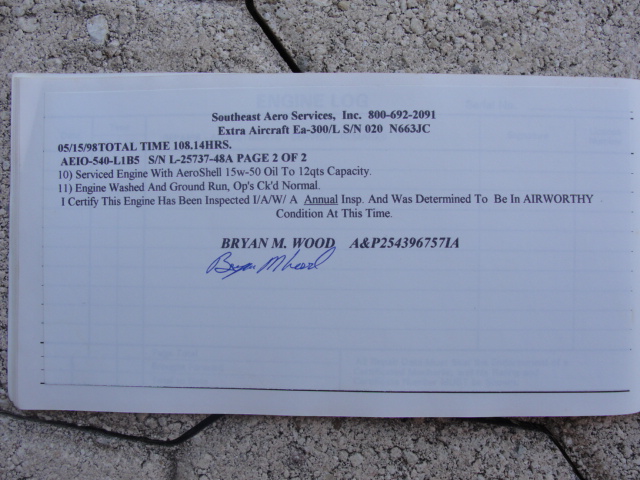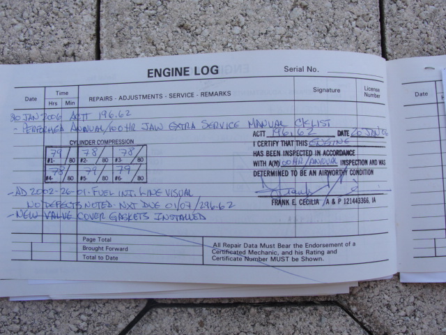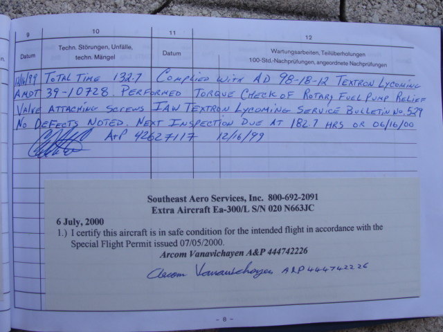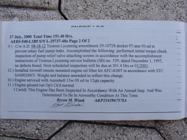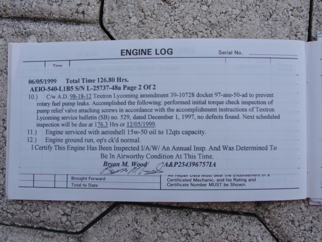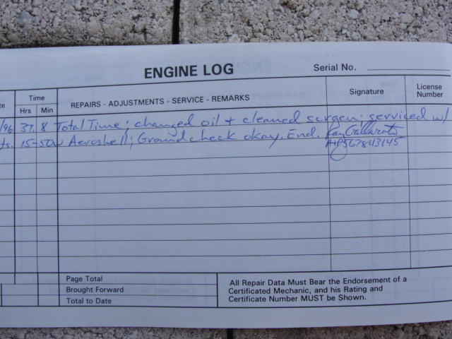 Please find the images below of the airframe, engine and last three pages of the propeller log books in addition to the Certificate of Airworthiness.