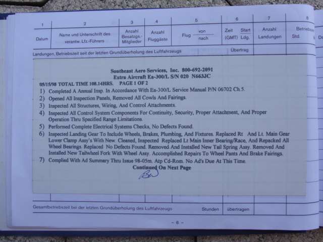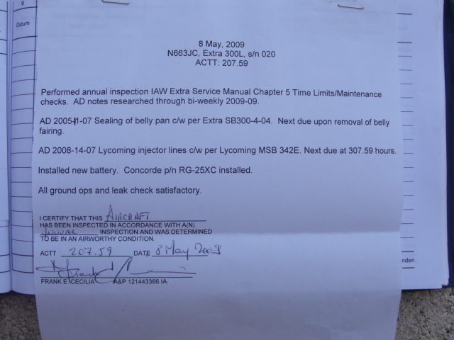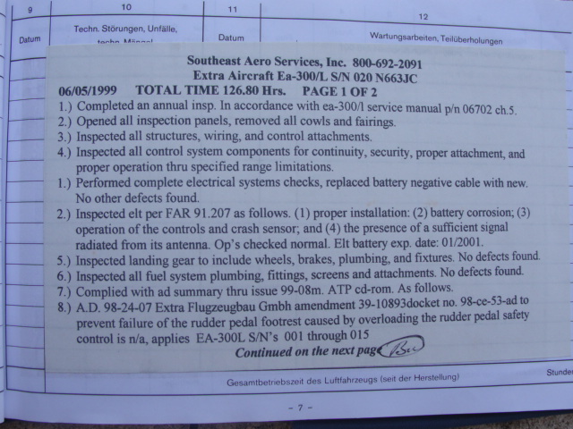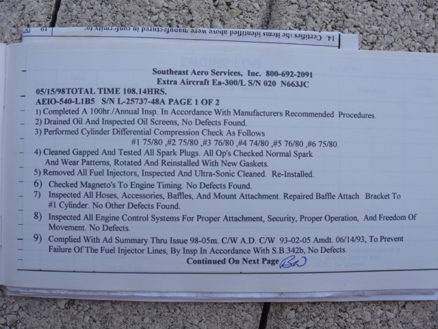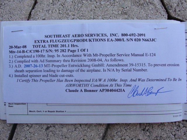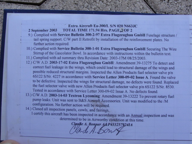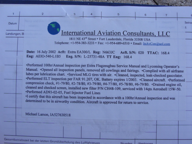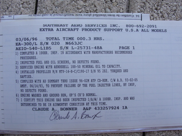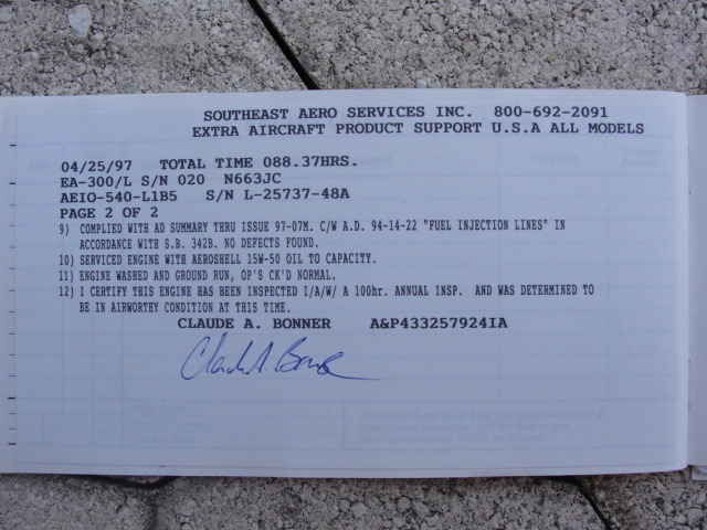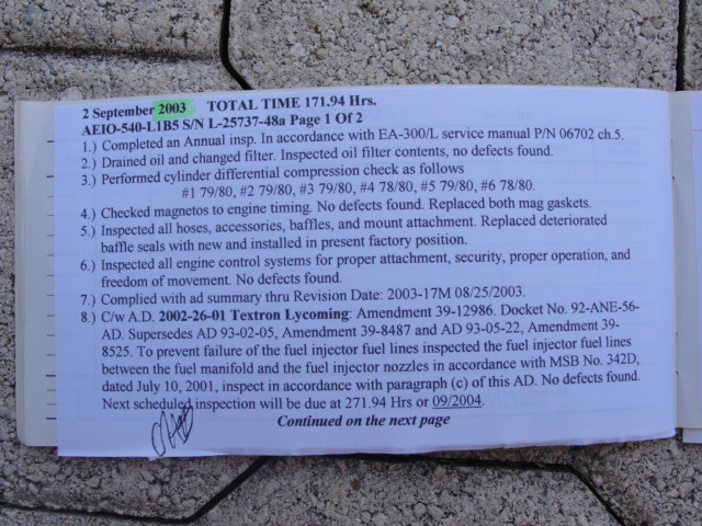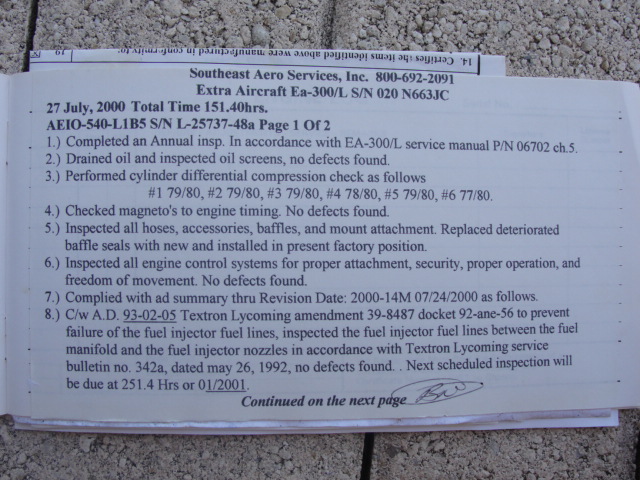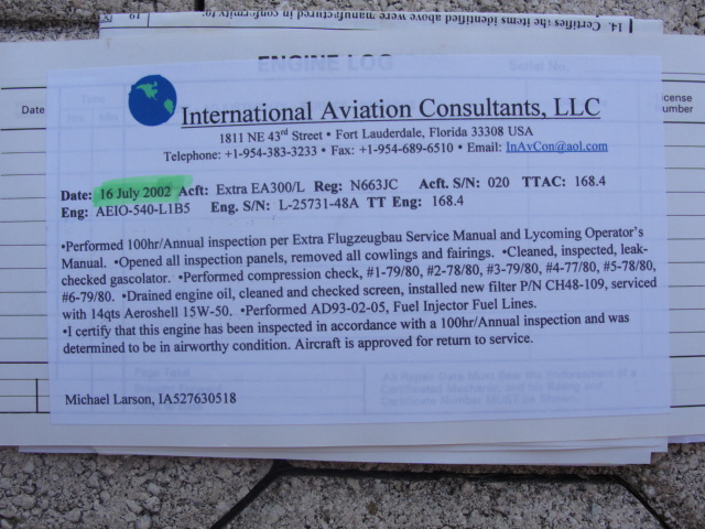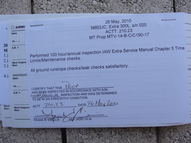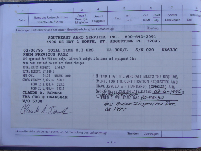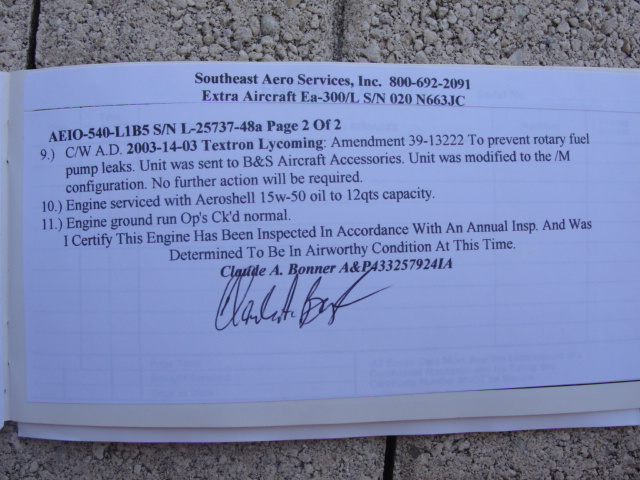 Please find the images below of the airframe, engine and last three pages of the propeller log books in addition to the Certificate of Airworthiness.