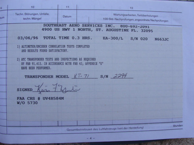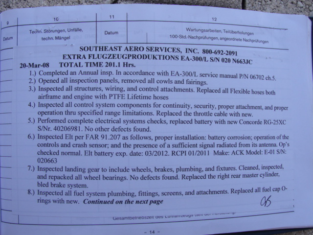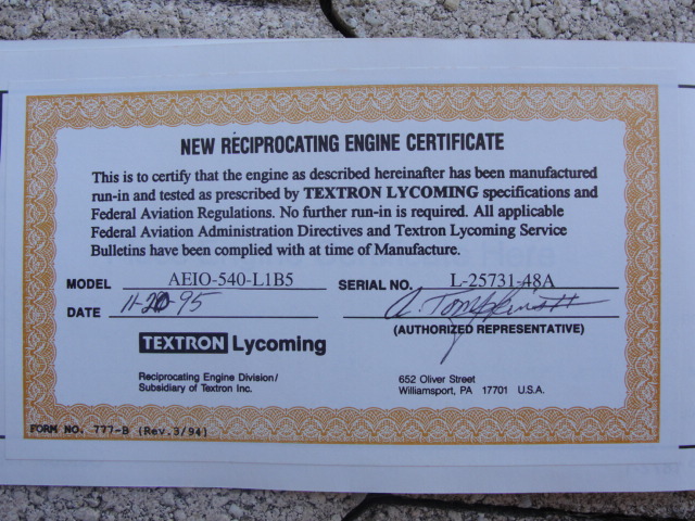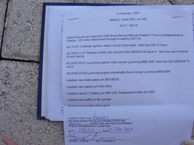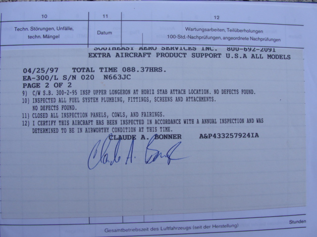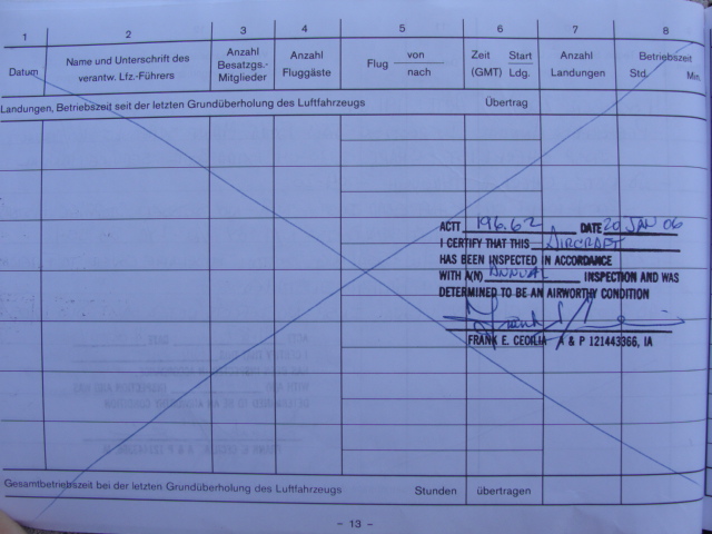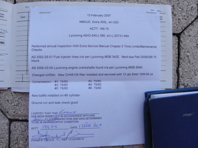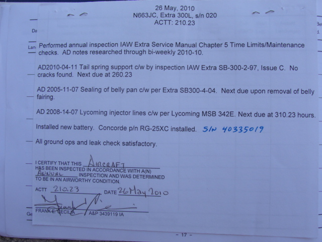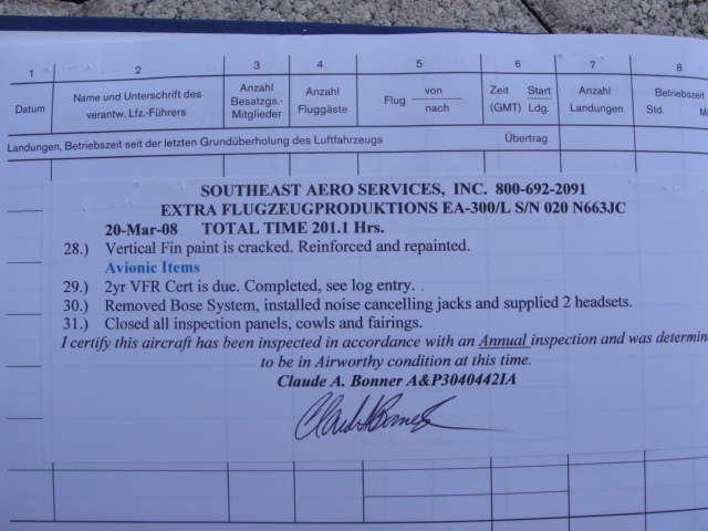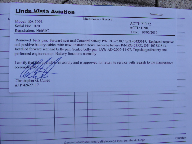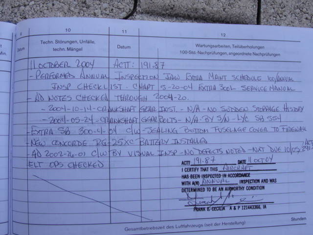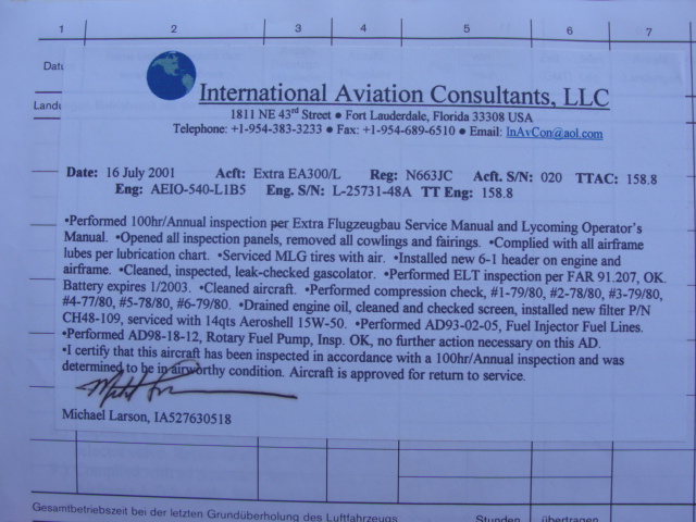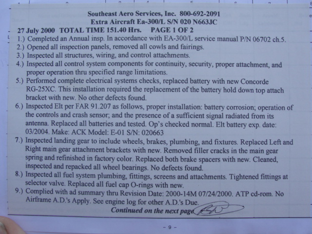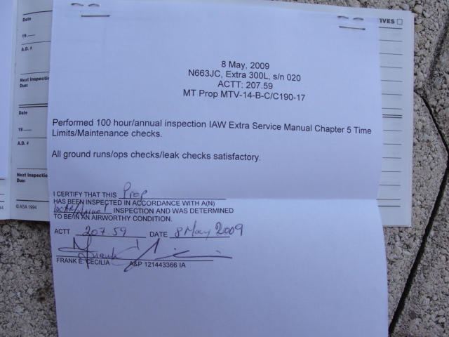 Please find the images below of the airframe, engine and last three pages of the propeller log books in addition to the Certificate of Airworthiness.